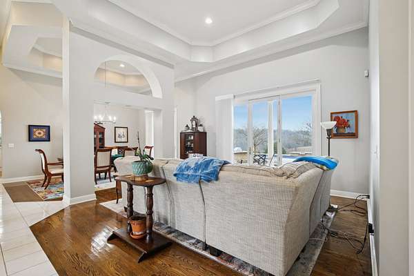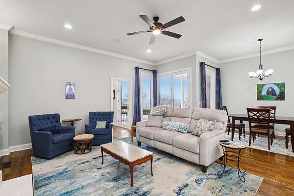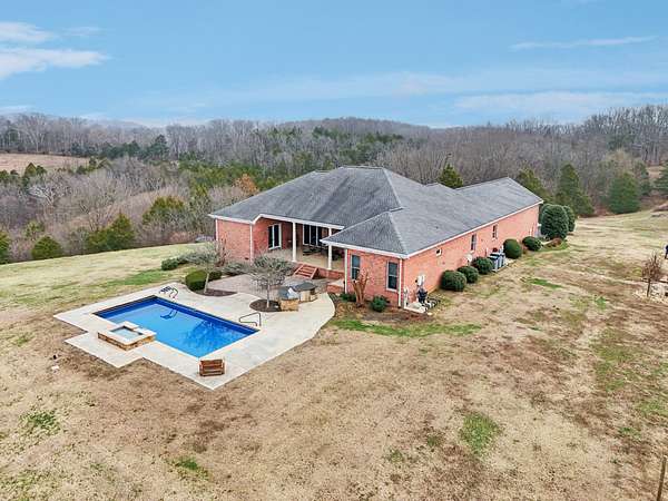 Discover this breathtaking 3-bedroom, 3-bathroom home spanning over 4,000 square feet. It features custom upgraded hardwood floors in the master bedroom, living room, dining room, and kitchen/family room. The remaining two bedrooms and the bonus room upstairs have upgraded carpet. All bathrooms boast luxurious quartz countertops and vessel sinks. All appliances are included with the home. There are three separate heating and cooling zones and two upgraded, energy-efficient water heaters. The home has a 400 Amp electrical service. The master porch is pre-wired for a hot tub, and there's an encapsulated crawl space. The property includes a four-car/tandem garage and a fiberglass in-ground pool with an electric safety track pool cover. A small outdoor barn is suitable for gardening or horses, and there's a four-person F1 rated tornado shelter. The property spans across 16.12 acres and offers stunning views, the best in Sumner County!