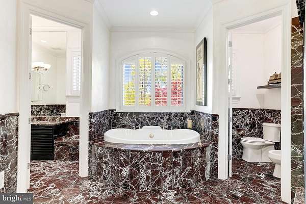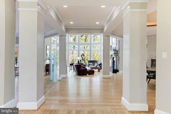 Commanding an incomparable vantage point above the Potomac River, this extraordinary stone estate by BOWA defines timeless sophistication and total privacy on more than three gated acres in McLean's most coveted enclave, moments from Washington, D.C. Beyond its stately approach and manicured grounds, the residence reveals over 16,000 square feet of refined interiors designed for both grand entertaining and serene daily living. A two-story great room with floor-to-ceiling windows frames sweeping river views, while French doors open to an expansive terrace that captures the tranquil beauty of the surroundings. The gourmet kitchen is a showpiece with professional-grade appliances, granite surfaces, a walk-in pantry with Sub-Zero refrigerator, and a hidden bar. The main level also offers dual offices, two powder rooms, elevator access, and a full laundry with pet bath-all under soaring ceilings that enhance light and volume. The main-level owner's suite is a private sanctuary with windows on three sides, dual dressing rooms, and a marble spa bath with jetted tub, steam shower, and private balcony overlooking the river. Upstairs, three guest suites each feature walk-in closets and elegant baths, two with French doors to balconies. The lower level is a destination in itself-featuring a lounge with stone fireplace, billiards area, wet bar, wine cellar, fitness room, and a stunning indoor pool with skylights and glass doors opening to extensive stone patios. Additional amenities include a private in-law or staff suite with full kitchen, a salon, guest suite, and generous storage. Outside, terraced gardens, pergolas, water features, and a gazebo with full outdoor kitchen create a breathtaking resort-style setting. With five-car garage parking, geothermal systems, and whole-house generator, this distinguished estate offers rare scale, craftsmanship, and uninterrupted Potomac River views.