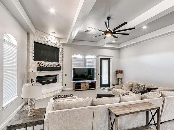 Stunning custom home on 5 beautifully manicured acres with private gated entrance. Home offers a spacious and functional floor plan featuring 5 bedrooms, 5 full bathrooms, 2 dining areas, a dedicated office with built-ins, and a theater room.