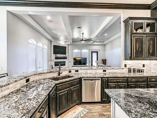 The chef-inspired kitchen boasts a large island, granite countertops, breakfast bar, and abundant cabinet space--perfect for entertaining and daily living. The primary suite features a spa-style bath with whirlpool tub, walk-in shower, and large walk-in closets.
