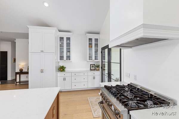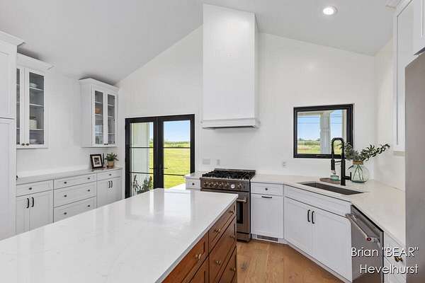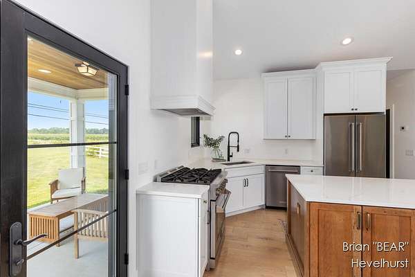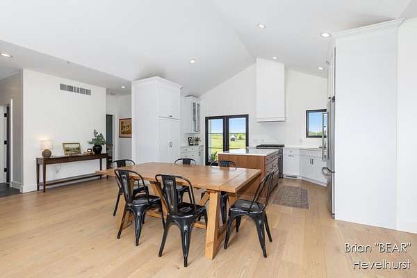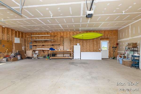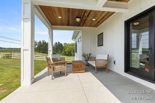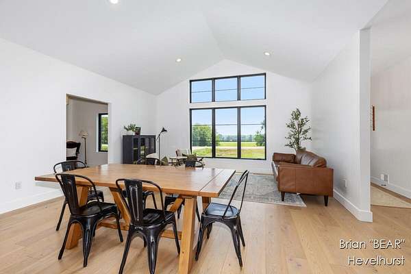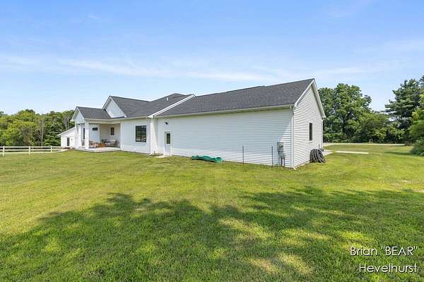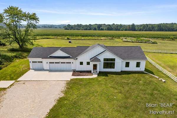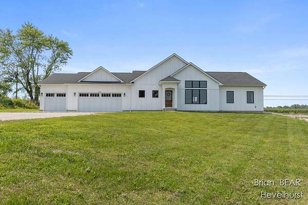 Welcome to 6581 Timpson! A stunning custom-built ranch nestled on 2.5 acres with breathtaking sunset views! This gorgeous 4-bedroom, 3-bath home offers exceptional finishes and thoughtful design throughout. The main floor features vaulted ceilings and large windows that flood the open-concept living space with natural light. The gourmet kitchen is a chef's dream, boasting quartz countertops, custom cabinetry, dual pantries, a dedicated coffee bar, and a commercial-grade range with hood. The luxurious primary suite includes a spa-like bath with marble floors, a soaking tub, a glass wall walk-in shower, and a walk-in closet. A second ensuite bedroom, a home office, and a flexible room, perfect as a playroom, game room or potential 5th bedroom, are also located on the main level. The finished lower level is designed for entertaining and everyday living, featuring a spacious family room, wet bar, fitness or hobby area, two additional bedrooms, a full bath, and ample storage. Step outside and enjoy the peaceful setting with plenty of room to expandwhether that means adding a pole barn, an inground pool, or both, to create your dream backyard retreat. A 3-stall garage completes this exceptional property, offering space for vehicles, tools, and toys. This home combines modern luxury, thoughtful functionality, and endless potential, all just minutes from town, yet with the privacy of country living.