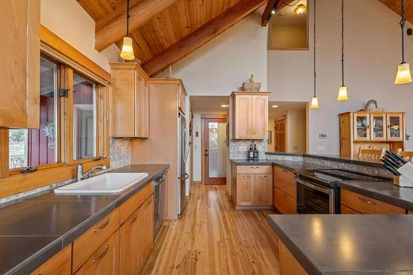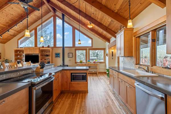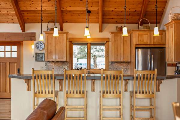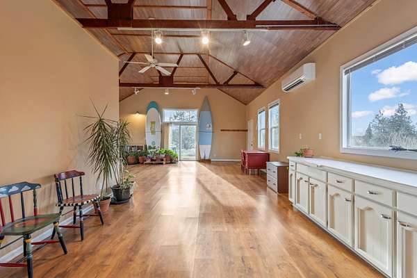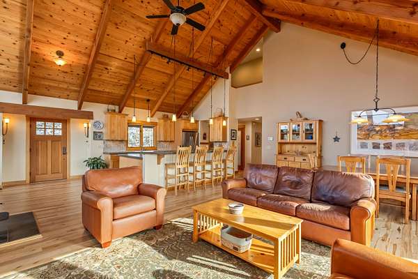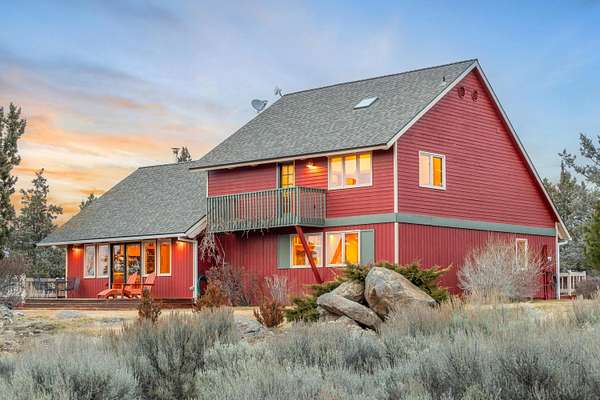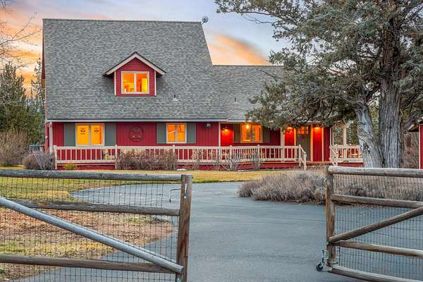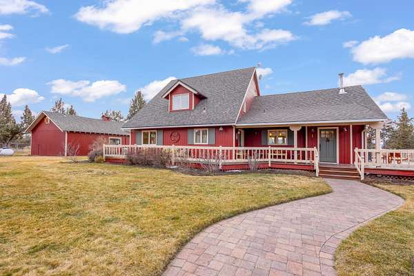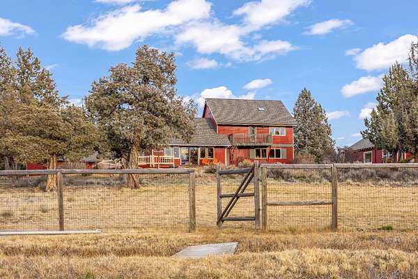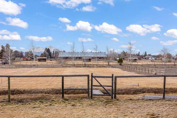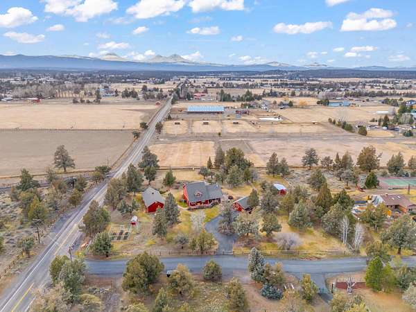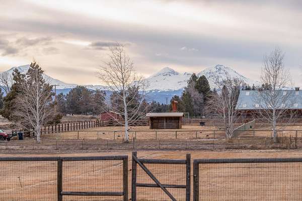 Nestled in the sought-after golden triangle of Tumalo on a private road, this beautifully updated 4.34 acre retreat captures sweeping Cascade Mountain views and the best of Central Oregon living. With 2.05 acres of Tumalo Irrigation, fenced pasture, and animal stalls, it's ideal for hobby farming or enjoying the wide open space. The open great room floor plan features soaring vaulted ceilings with warm wood accents, built-ins, and soapstone woodstove that flow seamlessly in to the dining area and chef's kitchen complete with induction range, breakfast bar and expansive walk in pantry. Upstairs, the private primary suite boasts vaulted ceilings, skylights, a balcony, and a spa-like bath with soaking tub, tiled shower, double vanity, and walk-in closet. A versatile loft and two main-level bedrooms offer comfort and convenience. Outstanding outdoor living with extensive decking, hot tub, and more. The nearly 1000 sqft detached flex building with a full bath offers endless possibilities.