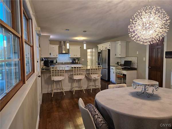 A Home Rooted in Comfort and Nature On a stretch of wooded land located in the Town of Marcy, on Stage Road, a custom colonial stands with grace and welcome. Built with care and lived in with love, this 5-bedroom, 2.5 bath home offers nearly 3,000 square fee of space to grow, gather, and make memories. Step through the front door and into a world of warmth: hardwood floors, a formal dining room, ready for holiday feasts, and a family room where a propane fireplace glows on snowy nights. The kitchen-bright with white cabinetry, granite countertops, dining area, and a breakfast bar-opens to a covered deck where morning coffee meets birdsong. The finished basement invites laughter and connection with its knotty pine dry bar and game room. A walk-in cedar closet, utility area with force air furnace and central air, including shelves offer space for storage. Outside, 5.17 acres of wooded trails beckon. The patio, with its 4 season propane fire pit and custom bench seating, becomes a gathering place for crisp fall evening and snowy days/nights. A place for quiet reflections. This is more than a house. It's a haven. A place where legacy begins, and belongings bloom. Are you ready to welcome it's next chapter?