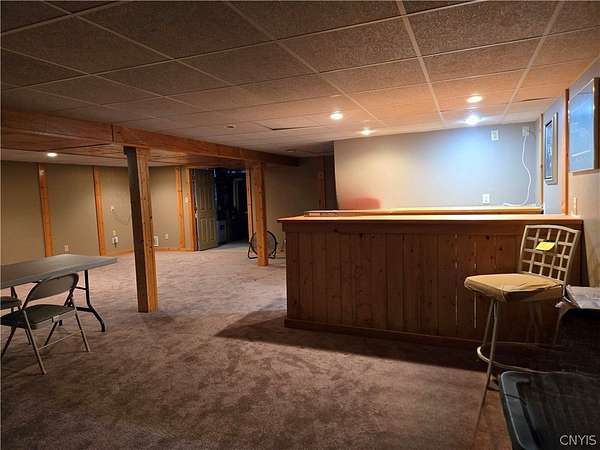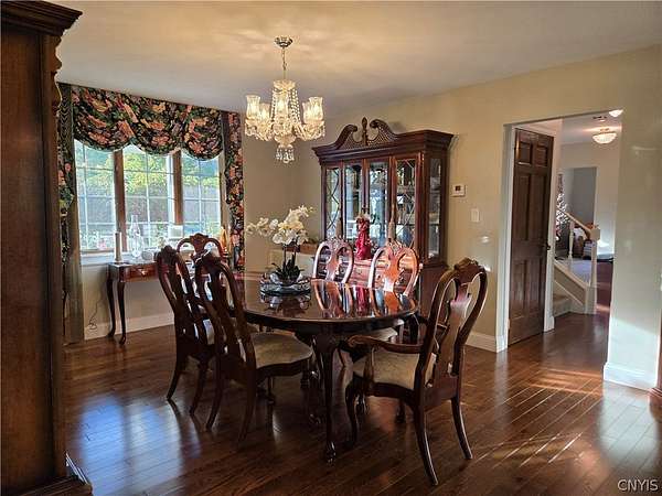 A Home Rooted in Comfort and Nature On a stretch of wooded land located in the Town of Marcy, on Stage Road, a custom colonial stands with grace and welcome. Built with care and lived in with love, this 5-bedroom, 2.5 bath home offers nearly 3,000 square fee of space to grow, gather, and make memories. Step through the front door and into a world of warmth: hardwood floors, a formal dining room, ready for holiday feasts, and a family room where a propane fireplace glows on snowy nights. The kitchen-bright with white cabinetry, granite countertops, dining area, and a breakfast bar-opens to a covered deck where morning coffee meets birdsong. The finished basement invites laughter and connection with its knotty pine dry bar and game room. A walk-in cedar closet, utility area with force air furnace and central air, including shelves offer space for storage. Outside, 5.17 acres of wooded trails beckon. The patio, with its 4 season propane fire pit and custom bench seating, becomes a gathering place for snowy days/nights. With spring/summer in the air, it's time to enjoy the pool and the wooded trails! This is more than a house. It's a haven. A place where legacy begins, and belongings bloom. Are you ready to welcome it's next chapter?