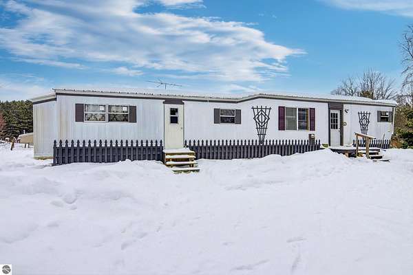 Est $1,419/moDiscover over 4 acres of open countryside with easy access to Crystal Mountain, the Benzonia shopping district, trails, area rivers & lakes for outdoor enthusiasts. The property includes 2 renovated mobile homes, a 12'x70' 2 bed/1 bath & a 12'x65' 1bed/1bath, ideal for rental income or multi-generational living. In addition, a 25'x30' steel pole barn w/lean-to, excellent storage for equipment, toys or a workshop. Property has 1 private well, and 2 private septic systems (one installed in 2022). Electric, propane & wifi available. Versatile opportunity to invest, rent, or make your own up-north retreat.