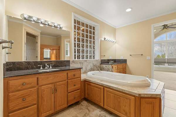 - Built-In Features, Ceiling Fan(s), Central Vacuum, Double Vanity, Elevator, Enclosed Toilet(s), Pantry, Primary Downstairs, Stone Counters, Tile Shower, Walk-In Closet(s), Wired For Data