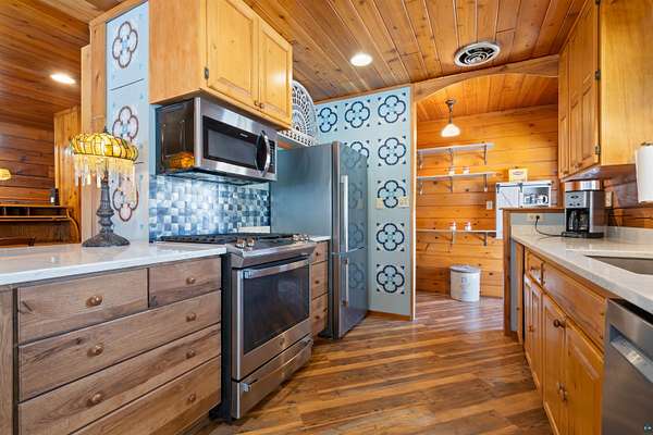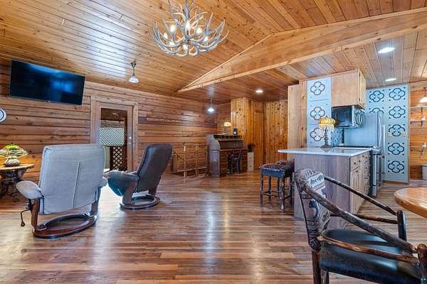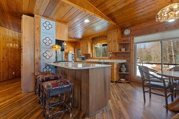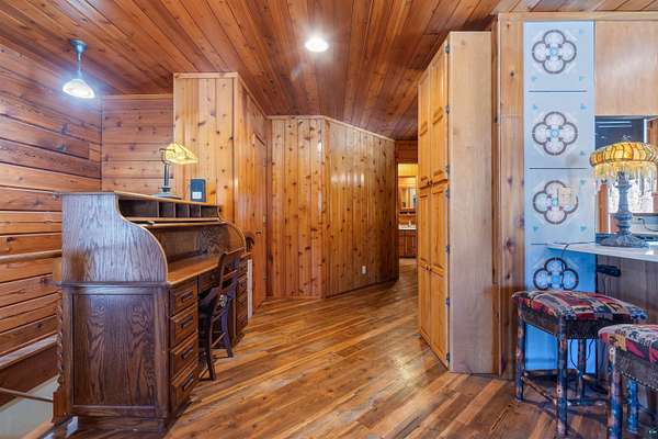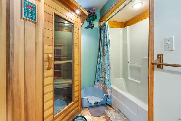 - Ceiling Fans, Dryer Hook-Ups, Drywalls, Hardwood Floors, Kitchen Center Island, Main Floor Laundry, Natural Woodwork, Patio Door, Sauna, Vaulted Ceilings, Washer Hook-Ups