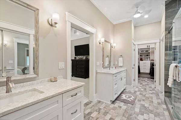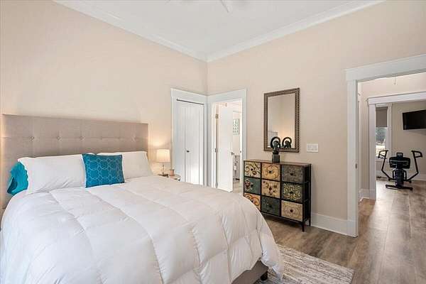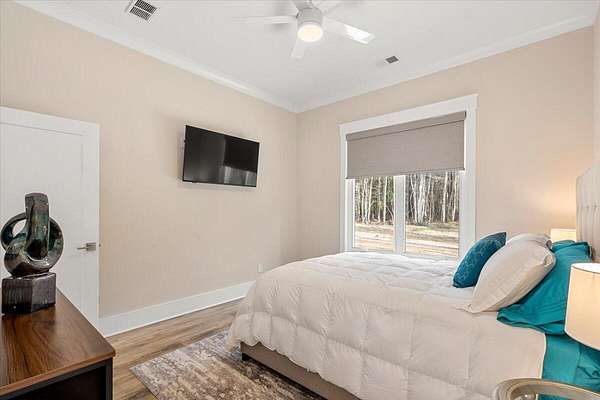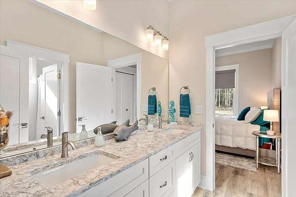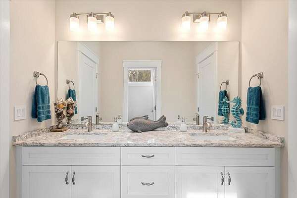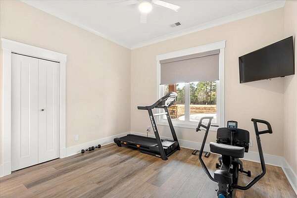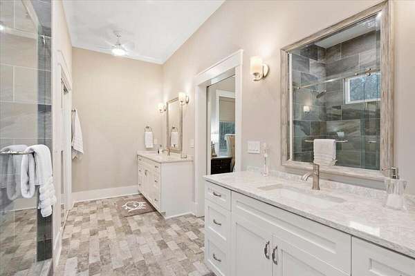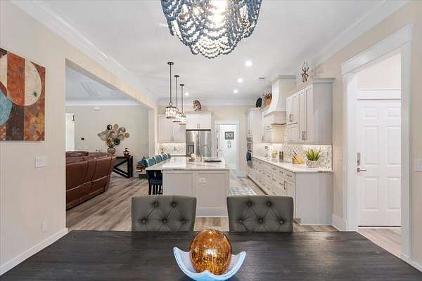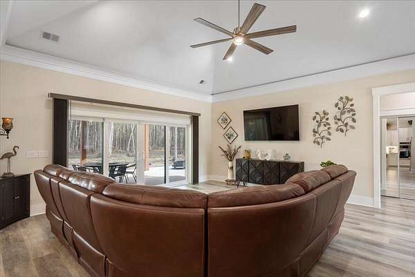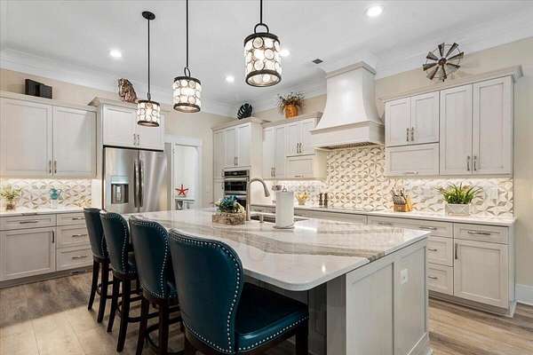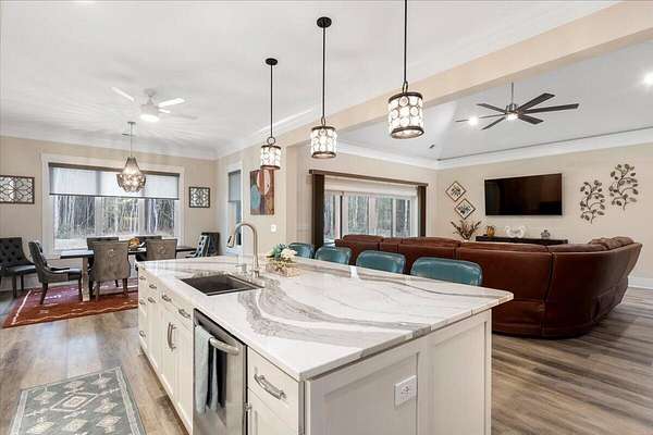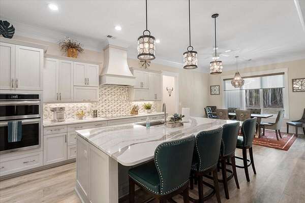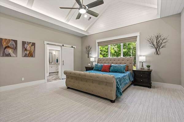 Welcome to refined Lowcountry living in this beautifully crafted 2022 one-level Modern Craftsman ranch, where timeless design meets thoughtful luxury on nearly 3 private acres. A sweeping circular drive and expansive parking pad welcome you home, framed by professional landscaping and a charming architectural presence highlighted by board-and-batten siding, natural sandstone accents, and wood porch ceilings supported by impressive columns. Inside, the home unfolds into a bright, open-concept layout where a soaring cathedral ceiling and layered crown molding define the great room, enhanced by soft ambient lighting and wide-plank wood flooring that flows seamlessly throughout the main living areas. Designed with both beauty and function in mind, the chef's kitchen features anoversized quartz island, custom soft-close cabinetry, marble mosaic backsplash, and a full suite of premium appliances including an induction cooktop and convection oven with air-fry capability. A walk-in pantry and stylish dry bar with wine storage and beverage cooler elevate everyday living and entertaining alike. The owner's suite is a true retreat, showcasing a cathedral shiplap ceiling, serene lighting, and a spa-inspired bath complete with dual vanities, an oversized tiled walk-in shower with frameless glass, and custom his and her separate walk-in closets. Two additional spacious bedrooms share a well-appointed Jack-and-Jill bath, while a dedicated office with a designer barn door provides the perfect work-from-home space. Every detail has been carefully considered from the tankless water heater and high-efficiency HVAC system to the whole-home central vacuum, integrated security system, and hardwired Wi-Fi access points for seamless connectivity. The oversized finished garage offers exceptional versatility with boat parking up to 26', tandem parking, high ceilings, utility sink and workbench. The outdoor living is just as impressive, featuring a large rear tabby shell patio with gas connection for a future hot tub, ideal setting for quiet morning coffee, connecting to nature or evening gatherings. With expansive open space, the possibilities are endless. Design your dream outdoor oasis with room for a pool, garden or fully fenced yard. Beautifully designed landscape beds, and a unique geodesic garden feature that adds character, charm and incredible curb appeal. Zoning allows for an accessory dwelling (ADU), a 67ft x 42ft concrete parking pad that accommodates 10 vehicles, several boats or an RV. No flood insurance required, no HOA or CCR's. A rare opportunity to own a meticulously crafted and well maintained home that perfectly balances rural privacy and urban conveniences. Just minutes to Mt. Pleasant, shops, dining, and beaches. AGENT IS OWNER.