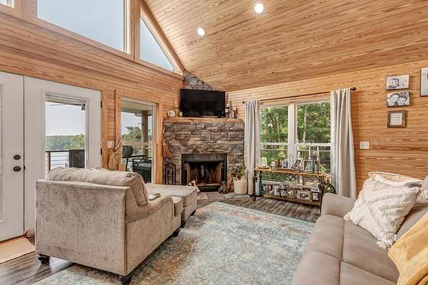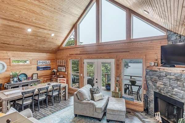Est $3,657/moOne of the most beautiful panoramic views on Smith Lake on Rock Creek 288 water front. The home has 2beds 2 baths. Home has custom tile showers, cabinets with granite countertops and stainless appliances. Easy access to the water with steps that lead down the most beautiful walk to the water with a swim platform.