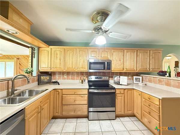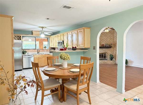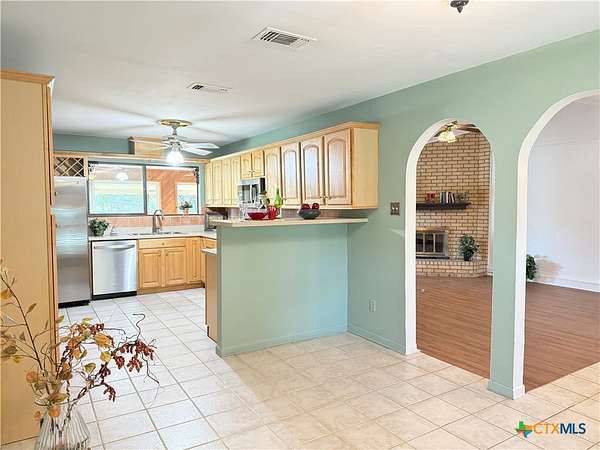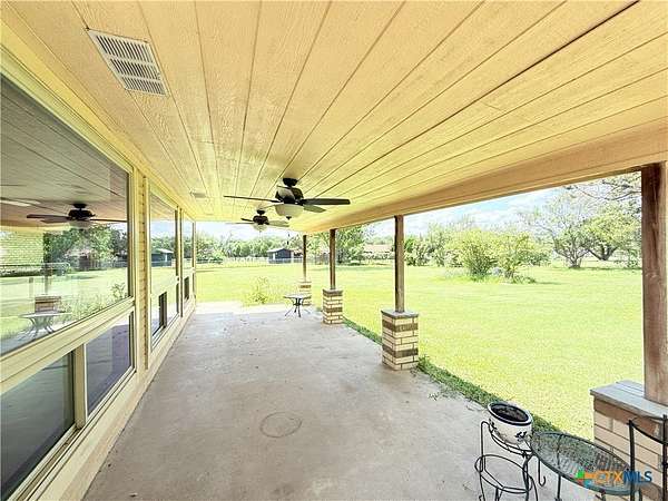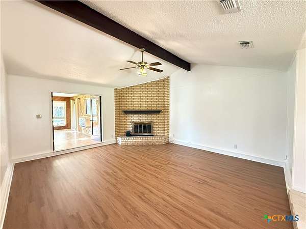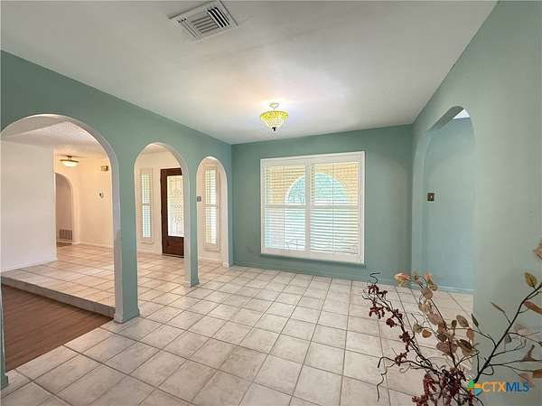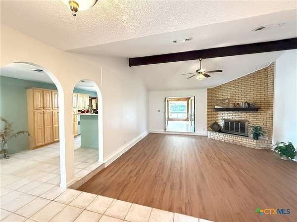Big, Bold, & Beautiful!! Exclamations are in order when you see this lovingly tended home on 2.344 wooded acres-perfect for those seeking tranquility & a connection to nature! The location is ideal: a quiet neighborhood with a country feel yet close to Copperas Cove. A covered front porch welcomes guests into this well-designed, nicely renovated floorplan. Ceramic tile covers the foyer, kitchen, & wet areas; the rest of the home features desirable LVP flooring. Step down into the grand living area with vaulted, beamed ceilings & a cozy fireplace setting a warm tone. French doors open to the huge, light-filled family room offering wide-screen views of the surrounding acreage. Sliding glass doors lead to expansive covered & open patios & a fenced backyard. The upgraded gourmet kitchen is a chef's dream with solid-surface countertops, new cabinets, & a versatile peninsula offering workspace, storage, & barstool seating-perfect for casual meals. A trio of arches transitions from the foyer to the dining area adjoining the kitchen. The generously sized primary suite sits to the right of the foyer & features a modern barndoor to the primary bath, which includes dual closets, a spacious dual-sink vanity, & a separate wet area for the large shower & toilet. The 2 spacious secondary bedrooms have ceiling fans, arched windows, & ample closets, and share a full bath with a Kohler soaking tub. Washer & dryer hookups are off the kitchen, next to a room ideal as a butler's pantry. Another multipurpose room makes a great office with private entry & adjoining storage. Bonus amenities: two twin carports, 3 storage buildings, a pump house, water storage tank, deep well with new pump head, & sprinkler system.