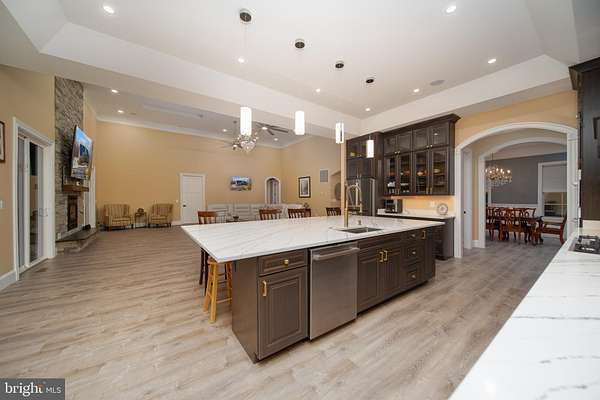 Follow your private softly lit driveway to this extraordinary multi-generational masterpiece, located in the prestigious Waterside Reserve community. Situated on 3.5 stunning acres this home is the only one that does not have the HOA rules and regulations or fee! The community has access to the scenic Shenandoah River and offers a serene retreat just 5 minutes from downtown historic Charles Town. Only 2 minutes from Rt. 115, a major commuting route to Northern Virginia and Suburban Maryland, this estate is the perfect blend of rural tranquility and convenient access. Step inside, where elegance and thoughtful design greet you at every turn. The open-concept living area seamlessly connects the upgraded kitchen, dining space, and family room-creating a warm and inviting atmosphere for both relaxed family time and vibrant entertaining. The formal dining room and private office are situated off the main foyer, providing refined spaces for hosting and productivity. The chef's kitchen is a dream come true, boasting upgraded gas stainless steel appliances, ample storage in the custom upgraded cabinetry, walk in pantry and butler's pantry complete with a wine and coffee bar-perfect for entertaining in style. This home's design is tailored for multigenerational living with a finished lower level that serves as an independent living space. This expansive area includes a gas fireplace, full kitchen, den, hobby room or exercise room (possibly additional sleeping quarters), laundry room, bar, utility room, and two luxurious bathrooms. With its private entrance and patio/porch, this lower-level retreat offers unparalleled comfort and autonomy for extended family or guests. Additionally, a charming au pair suite is conveniently located off the kitchen and accessed through a back foyer leading to the garage. This suite comes with its own private entrance, ensuring privacy for both the main residence and the suite occupants. The lavish primary suite is truly massive, featuring 10-foot-high ceilings and a spa-like en-suite bathroom with a walk-in shower, heated floors, bidet, and jetted tub-a luxurious haven designed for ultimate relaxation. The home's split floor plan layout provides additional privacy, with each bedroom offering its own en-suite bathroom, ensuring every occupant enjoys a personal retreat Unwind on the gracious southern front porch or the cozy covered rear porch, where you can enjoy your morning coffee while soaking in the tranquil natural surroundings. Whether you're looking for peace and privacy or a place to gather and entertain, this outdoor space offers it all. The side-entry three-car garage provides ample space for vehicles and storage, perfectly complementing the thoughtful layout of the home. The homeowner has thought of everything! There is underground conduit placed for future hot tub, pool house, and generator as well! Located in an upscale community with Shenandoah River access, this property offers the best of both worlds-quiet country living within close proximity to essential amenities and major commuting routes. It's truly a one-of-a-kind opportunity to live in luxury while embracing nature and convenience.