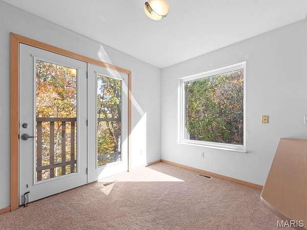 Welcome to 6590 Tower Road, a private retreat nestled on 4 peaceful acres. From the moment you step inside, you're greeted by an abundance of natural light pouring through a dramatic wall of windows that soars to the peak of the cathedral ceilings. The open, airy floor plan flows seamlessly into the inviting living area, complete with a cozy wood-burning fireplace--perfect for everyday living and effortless entertaining. French doors from the dining room open to a space already designed for the deck of your dreams. The main level offers two spacious bedrooms, each with walk-in closets. Upstairs, the private primary suite is a true sanctuary, featuring a walk-in closet, en-suite bath, charming window seating, and a versatile loft area ideal for a home office, reading nook, or additional living space. Thoughtful upgrades include newer insulated windows with elegant marble sills, central vacuum, a basement floor safe, 2 jetted tub, and stunning Amish-crafted maple woodwork throughout. This home blends comfort, craftsmanship, and privacy in a truly special setting.