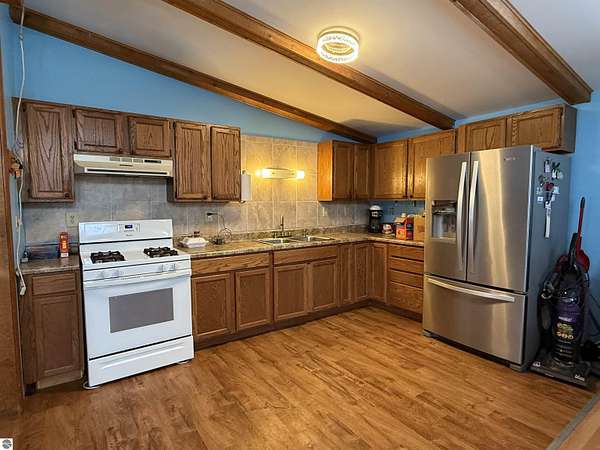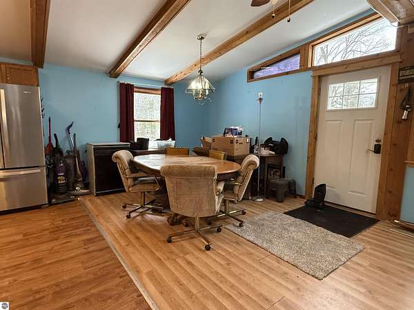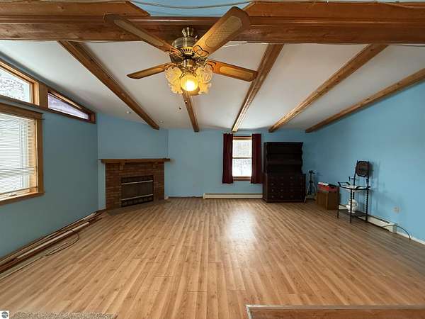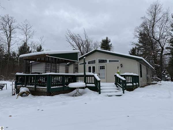 Set on a scenic 21.5 acres, this 3-bedroom, 2-bath home offers space, privacy, and endless opportunities to enjoy the outdoors. Inside, you'll find an open living room warmed by a cozy wood-burning fireplace that flows into the kitchen and dining area--perfect for everyday living or gathering with family and friends. Outside is where this property really shines. A large garage and multiple sheds provide plenty of storage for equipment and toys, while the outdoor wood burner adds efficiency and comfort. Enjoy the views from the deck, explore the established trails, or settle into the heated deer blind right on the property. Much of the land is already fenced, making it ideal for recreation. Best of all, the end of the road opens directly into thousands of acres of Huron National Forest, with easy access to snowmobile and ORV trails. Whether you're looking for a peaceful retreat, a recreational base camp, or a place to enjoy the outdoors year-round, this property checks all the boxes.