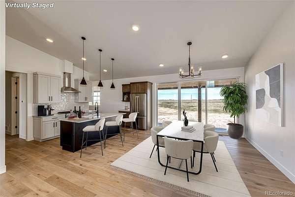 You can choose a home, but instead choose a LIFESTYLE! This stunning NEW CONSTRUCTION RANCH STYLE on 35 ACRES will not disappoint even the pickiest of home buyers! HIGH END everything...Welcome to your dream home, where modern elegance meets timeless farmhouse feel and charm. This brand new, thoughtfully designed home blends clean, contemporary lines with warm, rustic touches to create a space that feels both luxurious and cozy. This seasoned real estate agent was blown away by this one, a real must see! Step inside to a home that is well thought out from floorplan to finishes. NO STAIRS, OPEN FLOORPLAN, TALL CEILINGS, 8 FOOT DOORS! Gourmet kitchen with gorgeous cabinetry, lots of granite countertop space and a gas stove. The appliance prep kitchen is a new concept but one you will love, its everything from a pantry to place to keep the espresso and margarita machines. Large primary suite on one end of the home, lending to privacy from the two other bedrooms on this level. Huge primary suite bathroom with luxury spa vibes and walk in closet. The jack and jill bathroom for the extra bedrooms is private plus a 1/2 bathroom for guests. You will love the storage and built-ins throughout. 1385 SQ FOOT GARAGE (4 car attached) is a car enthusiast's ideal space, tall ceilings carried into the garage with whisper quiet doors and access to both front and back patio. Full unfinished basement is light and bright, ready to finish. Your outdoor lifestyle is PRIVATE, on your own 35 ACRES with unobstructed views and room to breathe! Covered front and back patios welcome you to spend evenings enjoying a meal or mornings catching a sunrise. This ranchette property is just the right size, room to roam and flat surfaces and good pasture grasses; build the barn of your dreams. Byers is a wonderful small town community with school, grocery store, golf course and so much more; country living at its best! Easy access to this property via paved roads just South of Interstate 70. Come see!