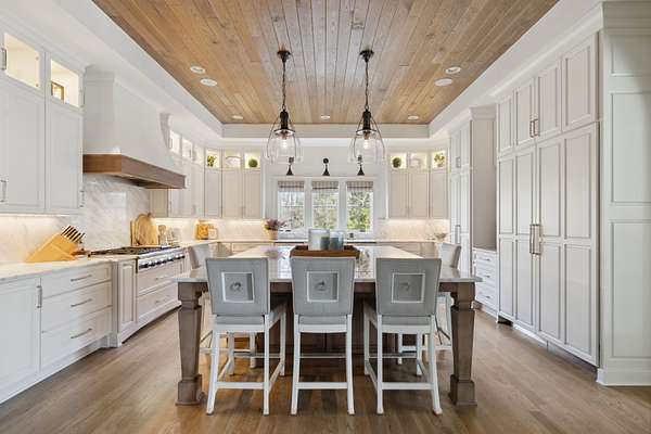 Outside, enjoy two covered back porches with a fireplace, outdoor kitchen, and automatic screens, plus a resort-style heated pool with a spa, waterfall, and access to pool bath. Additional highlights include an extra-deep 4-car garage with a High Lift Door System, a home generator, a storm shelter, and Pella windows throughout.