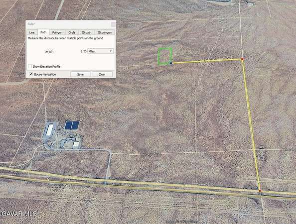 14 FWY/ 58 FWY-east/ 70th St-north 8/10ths of a mile to Leticia Ave , then west 4/10th of a mile to the lot. Southeast corner is at GPS Lat 35.03024 Lon-118.01455