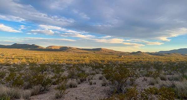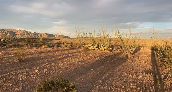 Est $199/moTruly one of a kind property located at the base of Black Peak in East Cedar Springs! This tract is lush with native cacti and features its own ocotillo forest. Wildlife is in abundance due to the proximity to Rotten Draw. Amazing views of Nine Point Mesa, YE Mesa, and the Northern entrance of Big Bend National Park. There is level ground in the NE corner that would be the perfect build site. Call Clay!