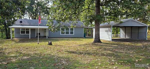 Discover your own private hideaway with this charming 3-bedroom ranch set on 1.9 serene acres complete with a fully stocked pond just approximately .25 mile from the city limits of beautiful Steelville, MO. Enjoy a walk-out basement, *two* double carports, and a huge 30x40 garage--perfect for all your vehicles, hobbies, and gear.