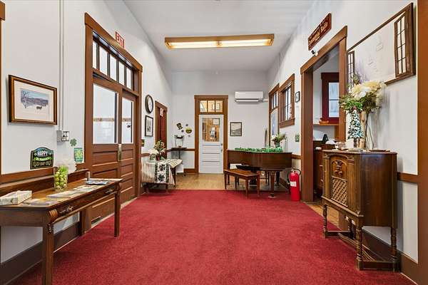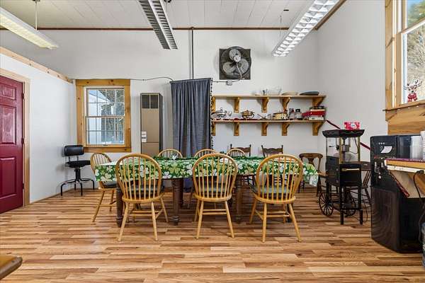 Where History Meets Possibility — An 1862 Schoolhouse Reimagined. Step back in time and into opportunity. Built in 1862, this remarkable historic schoolhouse has been lovingly preserved, its character and craftsmanship thoughtfully maintained while seamlessly supporting modern use. Since 1973, the building has served as the home of a thriving distribution business—proof of its adaptability, strength, and enduring design. Inside, original details remain intact: upper glass transom windows above the interior doors, warm pine floors worn smooth by generations, and a classic belfry still standing proudly above—ready to ring once again. Every inch of space has been meticulously finished with custom trim and thoughtfully designed shelving, maximizing both beauty and functionality. Updated windows enhance efficiency, while mini-split systems provide supplemental heat in cooler months and air conditioning through the summer. The property’s 3.70-acre open lot allows for impressive accessibility—semi-trucks can easily enter, turn, and load—making commercial use entirely viable. Yet the charm of the structure invites imagination far beyond its current role. Envision a distinctive live/work residence, a destination-worthy Airbnb, a creative studio, gallery, event space, boutique distribution hub—or transform it into a singular single-family home rich with character and story. Historic soul. Modern comfort. Boundless potential. Dream big—this one is ready. Also listed as Commercial, MLS# 5077754.