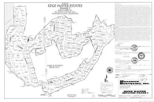 NOW AVAILABLE! LUXURIOUS EDGE WATER ESTATES AT LAKE EUFAULA, OK. Choose your waterfront, lake view & water access lots. It is your opportunity to purchase a piece of this majestic gated development in the blue water area of Porum Landing at Lake Eufaula, OK! There are 131 total lots platted in Phase One, Forty-two are currently listed and available. Lots are ready to build with rural water and underground electrical utilities. Lot sizes range from 32,500 sq. ft. (.75 acres) to 65,300 sq. ft. (1.5 acres). Building requirements are Lakefront lots: 2,400sq. ft. and up; Lake view lots: 1,800 sq. ft. and up; Mountain view/lake access lots: 1,200 sq. ft. and up. HOA fees are $1,200/year. Duchess Creek Marina boat ramps and restaurants are nearby. Currently, a 12-slip boat dock is in place with room to expand. Architectural diversity is encouraged; From coastal, arts and crafts, modern farmhouse, prairie, traditional and more. Large stone entry with a gated electronic entry system. Grab this opportunity to make an investment for your future and build your dream lake house at Lake Eufaula, OK. Call today! We would love to give you a tour!