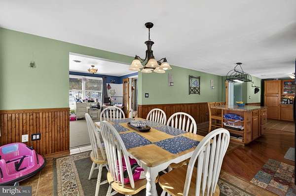 - Breakfast Area, Carpet, Ceiling Fan(s), Chair Railings, Combination Kitchen/Dining, Country Kitchen, Eat-In Kitchen, Formal/Separate Dining Room, Island Kitchen, Primary Bath(s), Recessed Lighting, Table Space Kitchen, Traditional Floor Plan, Tub Shower Bathroom, Wainscotting, Walk-In Shower Bathroom, Water Treat System, Wood Floors