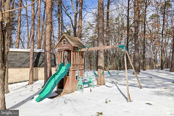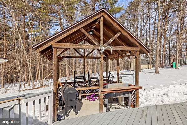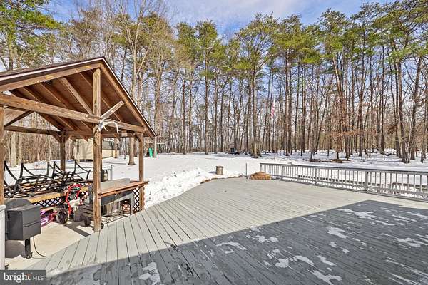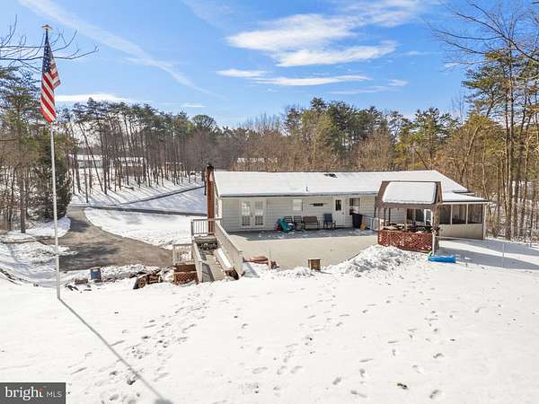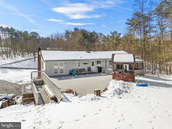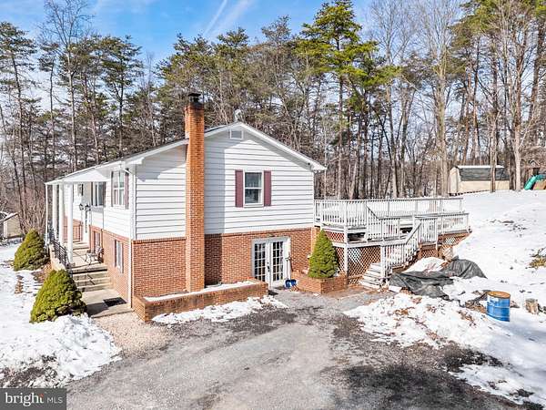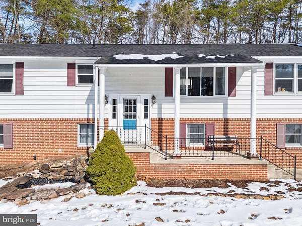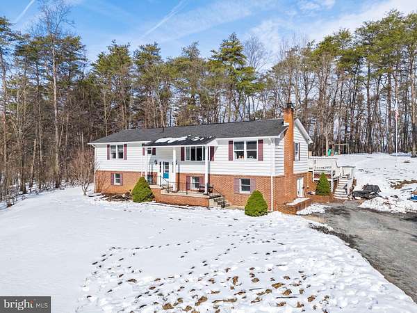 This split-foyer single-family home offers a traditional layout, generous living space, and a peaceful setting just outside Berkeley Springs. Situated on 1.61 acres and backing to trees and a utility right-of-way, the property provides long-term rear privacy with no future homes planned behind it. The home features 4 bedrooms, 3 full baths, and approximately 2,612 square feet of finished living space, including a fully finished walk-out lower level. Interior highlights include hardwood floors, partial carpeting, a formal dining room with French doors, and a comfortable living room with an electric fireplace. The eat-in kitchen offers an island and convenient access to outdoor living areas. Outdoor spaces include a large deck with pergola and a screened porch, overlooking a spacious yard that backs to trees. The property also includes a 10x20 storage shed and a fenced dog run area, providing flexibility for storage, pets, and outdoor use. Recent updates and system details include architectural shingles installed approximately four years ago, hot water heater replaced in 2023, a water pressure tank installed in 2016, a water softener, and a recently pumped septic system. The home is equipped with two heating and cooling units with separate thermostats, offering efficient comfort on both levels. Located in a quiet, private setting while remaining convenient to town and major commuter routes, this property offers a rare combination of space, functionality, and accessibility.