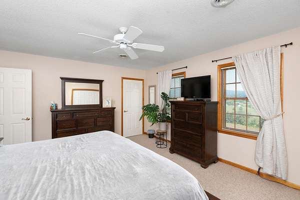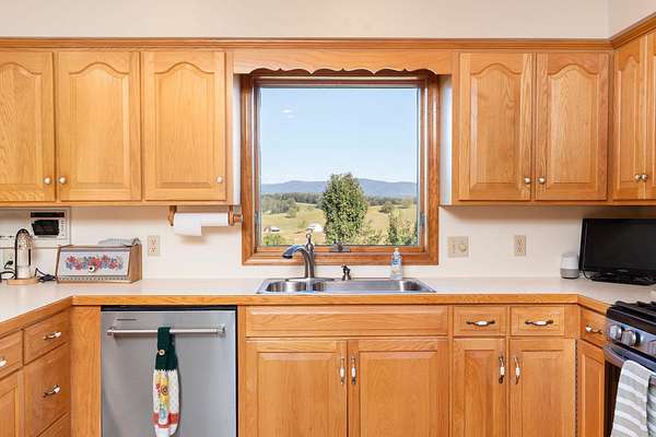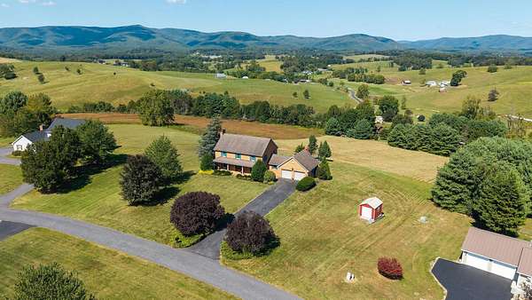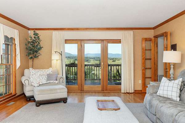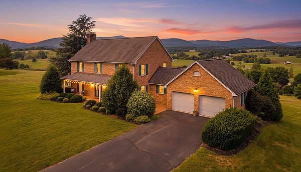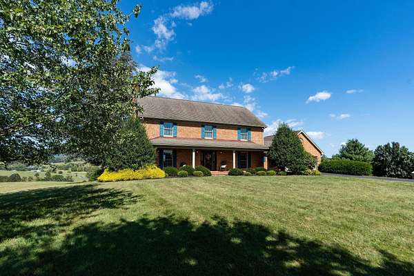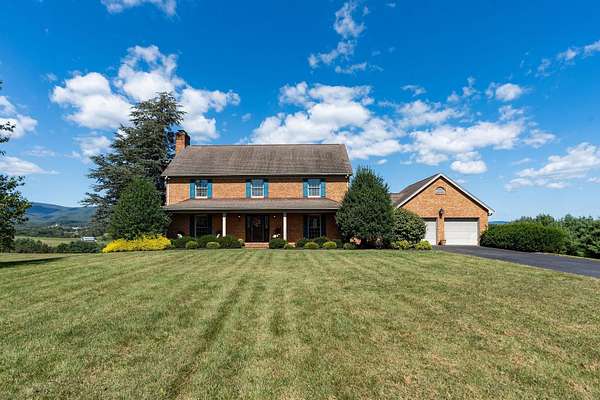 If mountain views are on your wish list-this is it! A custom-built brick home on just over 5 acres outside historic Staunton, offering nearly 4,000 sq ft of comfort and quality. A welcoming rocking chair front porch frames stunning mountain backdrops, while inside you'll find a huge kitchen with endless cabinets and built-ins-holiday central! Gleaming hardwood floors, crown moldings, and chair rail showcase craftsmanship throughout. The oversized primary suite includes a private en suite, and the full walkout basement boasts a rec room and custom bar. A fantastic neighborhood with elbow room and the charm of the good ole days-walking, bike riding, and wide open skies. Truly one of a kind!