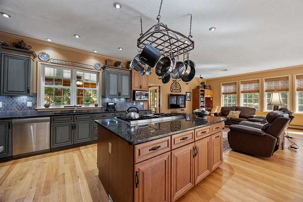 Spacious and versatile, this 5+ bedroom home offers over 2,000 sq. ft. of comfortable first-floor living in the heart of New Hampshire's Lakes Region. Designed and built by the owner/builder, this property combines thoughtful craftsmanship with modern amenities. The main level features two separate living areas, a chef's kitchen perfect for entertaining, a sun-filled three-season porch, and a luxurious primary suite complete with a spacious bathroom offering two separate baths. Upstairs, you'll find three generously sized bedrooms, two full bathrooms, and a large bonus room above the garage--ideal for a playroom, office, or guest space. The fully finished basement provides a second complete living area with full kitchen and dining/living room and bedroom with additional rooms; combined with a private entrance, offers flexibility for extended family. Car enthusiasts and hobbyists will appreciate the additional oversized one-car garage building alongside the attached 3-car garage, providing ample storage and workspace. Nestled on over 3 acres at the end of a country road, this home ensures peace and privacy while directly abutting the Birch Hill Golf Course. Whether you're seeking a full-time residence or a vacation retreat, this property offers room to spread out and enjoy all that the Lakes Region has to offer, including boating, fishing, golf, and year-round recreation. Don't miss your chance to own this spacious, well-built home!