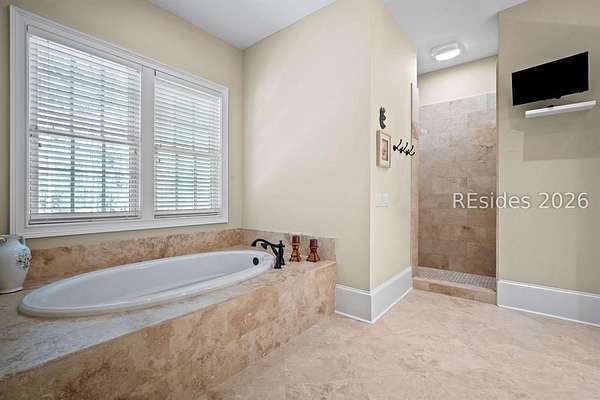 - Book Shelves, Built-Ins, Cable TV, Carbon Monoxide Det., Cathedral Ceilings, Ceiling Fan(s), Fireplace, Jetted Tub, Separate Shower, Smooth Ceilings, Window Treatments