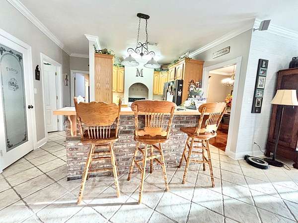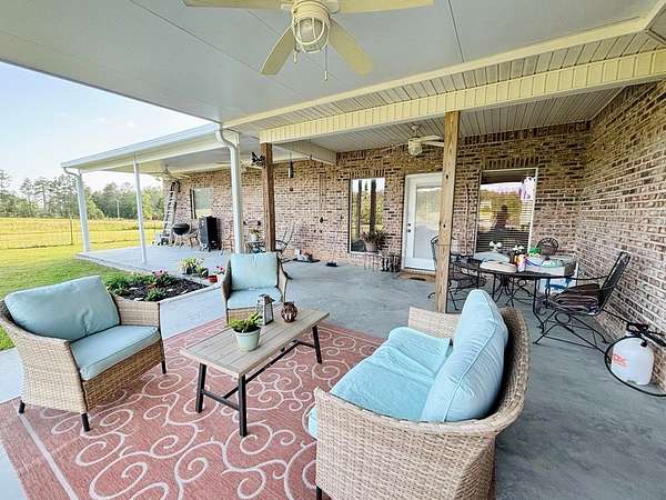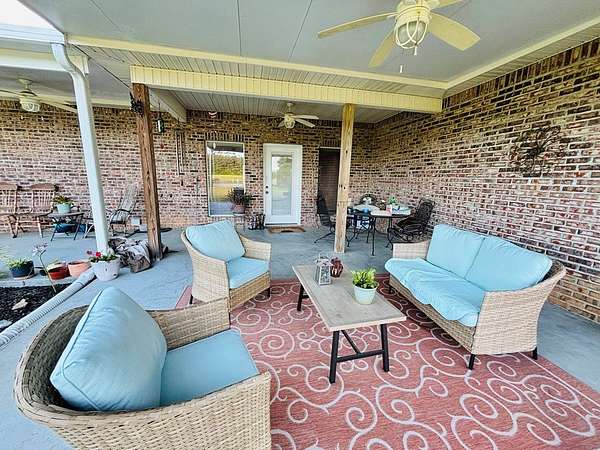 Est $1,836/moSPACIOUS 3 BEDROOM 2 BATH BRICK HOME ON 5 GORGEOUS ACRES! Large living open to kitchen and 2 dining areas. Formal dining room could double as 4th bedroom if needed. Custom hardwood cabinets throughout. Huge master bedroom with walk-in closet, walk-in shower, and soaking tub. Large covered back patio and porch...perfect for entertaining. Outside there is a 2 car garage, man cave/workshop/shed, and pole barn with RV hook. Several fenced areas for the animals and stocked pond perfect for fishing. All this at a great price!!!