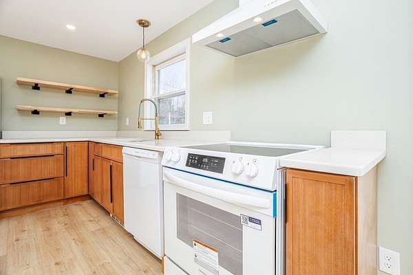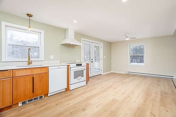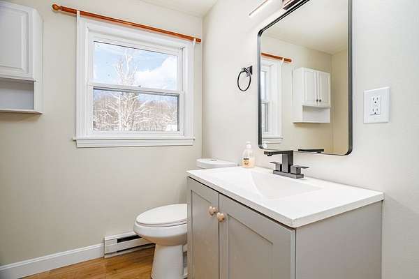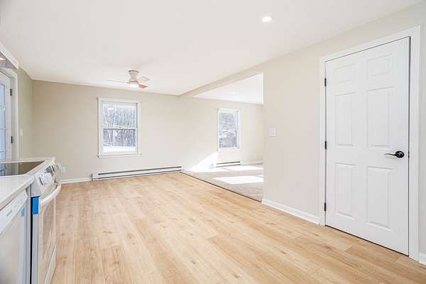 Wow! Awesome opportunity to break into the real estate market in the Wonderful town of Westminster. This home has been thoughtfully renovated. Beautiful kitchen with new white appliances, stylish Quartz countertops and sleek wood Scandinavian style cabinets. Additional open shelving for odds and ends. First floor bedroom close to a renovated full bath with attractive walk in shower., new vanity and lighting. Open Concept kitchen, living and dining. Let the sun shine in with new sliders leading out to a newly built deck overlooking the spacious yard. Lots of natural lighting. Flexible floorplan! N EW (2025) 3 BEDROOM SEPTIC, updated plumbing, new flooring, updated electrical, freshly painted interior and exterior, new recessed lighting and so much more! Lower basement level could be finished for additional living space. Location, location with affordable price tag!