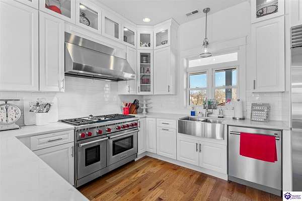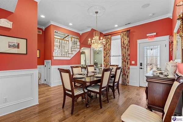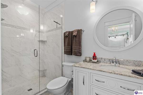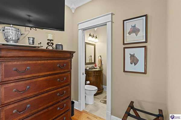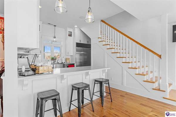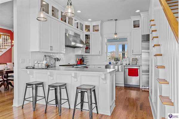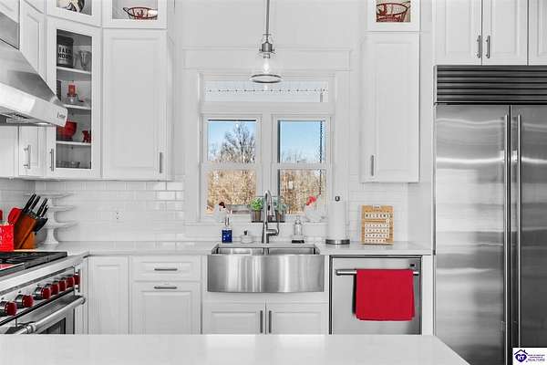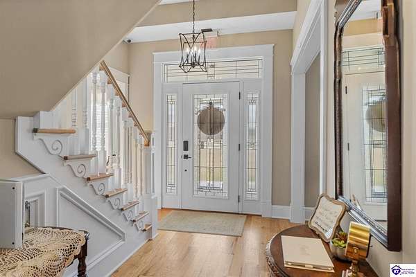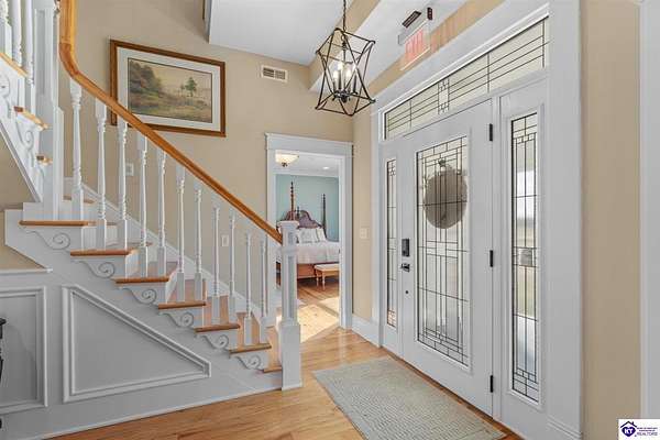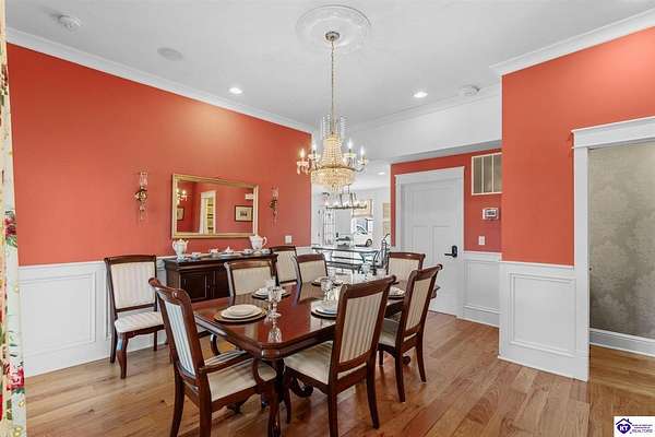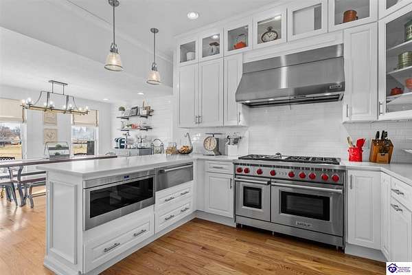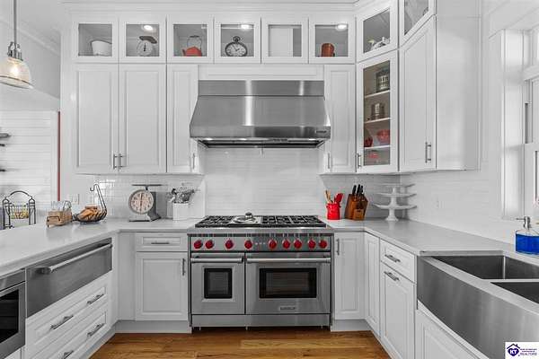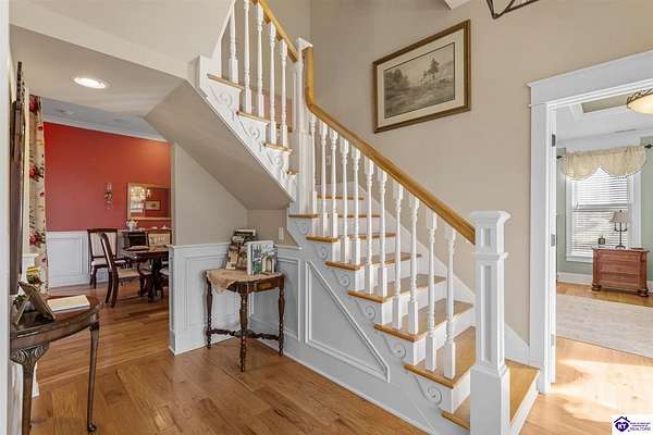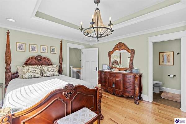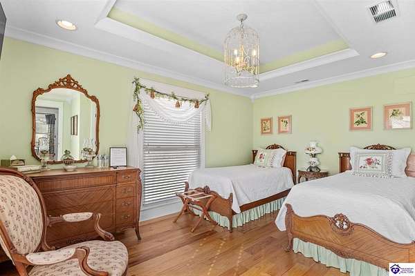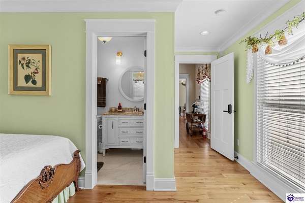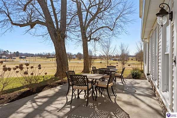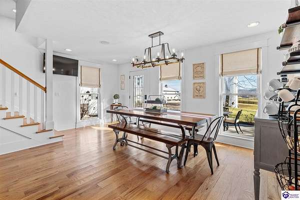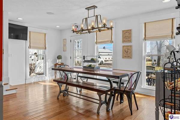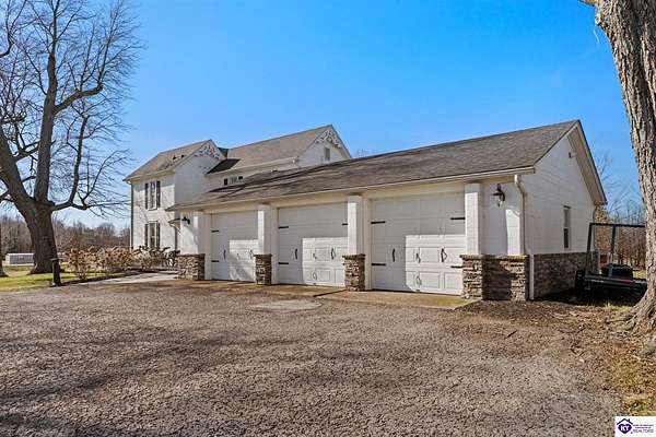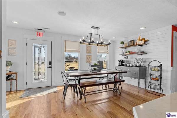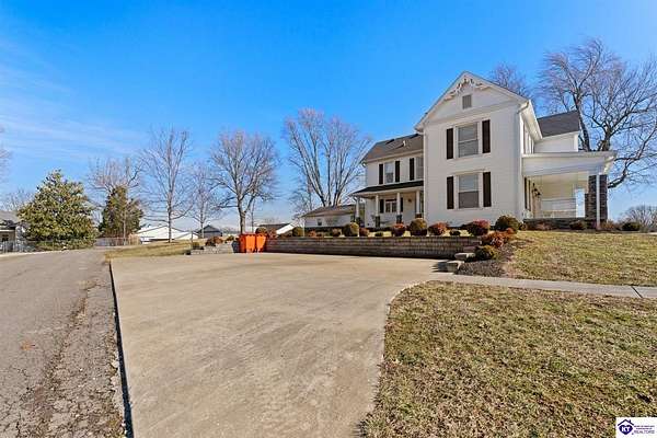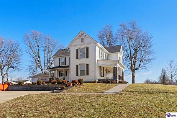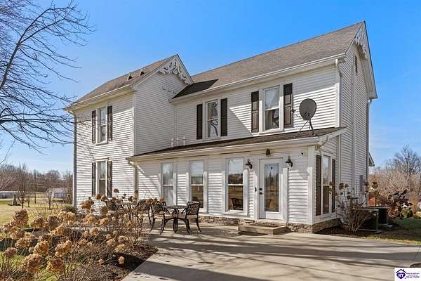 Exceptional opportunity to own a beautifully restored and fully operational farmhouse bed-and-breakfast in Hardin County. Situated on over 2 picturesque acres, this charming country retreat seamlessly blends historic character with modern commercial functionality and is being offered fully furnished, creating a true turnkey investment opportunity. The property features four well-appointed guest suites, each offering a private en-suite bathroom, including a spacious main-level primary suite plus an additional smaller bedroom that could be utilized as an office. The additional three guest rooms are located upstairs, providing privacy and comfort for visitors. Guests are welcomed into a warm and inviting commons area and a thoughtfully designed dining room ideal for gatherings and hosted meals. The heart of the property is an impressive commercial-grade kitchen with additional eat-in dining space, perfectly suited for guest service, catering, or expanded hospitality offerings. Just outside the kitchen, guests can enjoy a beautifully designed outdoor entertaining area featuring paver patios and outdoor dining space, creating a relaxing countryside experience. Adding to the property's versatility, the detached garage has been professionally converted into an event venue, offering exceptional income-producing potential for weddings, retreats, and private gatherings. With extensive renovations, stunning hardwood flooring, ceramic tile bathrooms, scenic rural surroundings, and furnishings included in the sale, this fully operational hospitality property presents a rare and seamless investment opportunity in the growing Hardin County market.