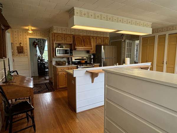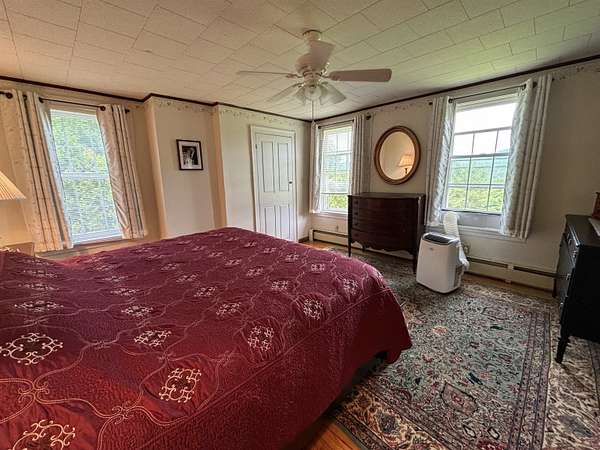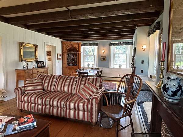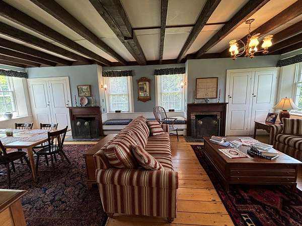 This private, lovingly renovated classic circa 1830 brick farmhouse is located at the end of a town road, offering views of the Green Mountains. The home features large, natural light-filled rooms, twin fireplaces in the dining room and living room, and a great room with a woodstove and a cathedral ceiling with exposed beams, all of which enhance its old-world charm. The property is conveniently located just minutes from town and the Lamoille Valley Rail Trail (LVRT). It is also situated between Stowe, Jay Peak, and Smugglers Notch, providing access to a variety of recreational activities. This is a must-see property.