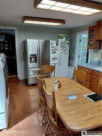 Spacious home in the Village of Cassadaga! Situated on approximately 2.7 acres, the property boasts a blacktop driveway with ample parking space. There are large rooms throughout, including a media room /office / multi use room complete with a sauna and three skylights. Convert it to a downstairs bedroom that is directly off of the country kitchen. A partially finished sun room includes a hot tub! The dining area and living spaces are vast and ample. Upstairs, there are 3 bedrooms. A covered porch opens to the front yard and street, with sidewalk access to local amenities. The local beach, boat access, and Lily Dale are minutes away. Hot Tub, Stove/Oven, Stainless Refrigerator, and Washer and Dryer are included.