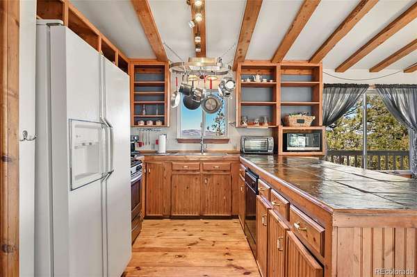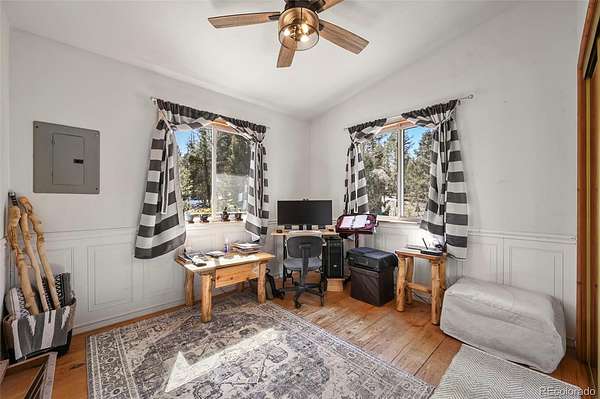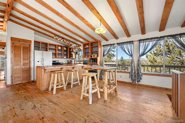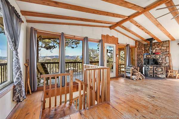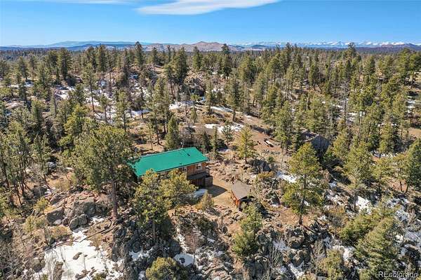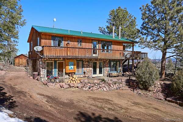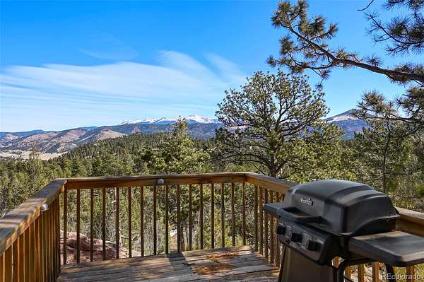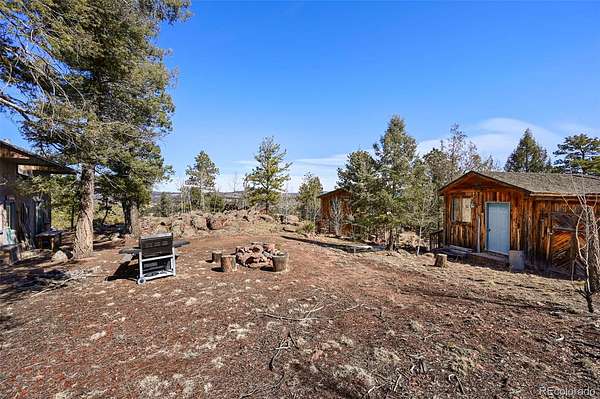 Discover this charming home perched atop the the mountains of Florissant, where breathtaking views and cozy living come together in perfect harmony. This delightful residence features 3 bedrooms and 2 bathrooms, ideal for both relaxation and entertainment. With a generous laundry and storage room, as well as living and family areas on both levels, this home is designed for comfort and convenience. Entering the lower level, you’ll find a large family room that invites warmth and relaxation, complemented by a beautiful wood stove. Additionally, there is an oversized bathroom complete with a clawfoot tub and a rejuvenating sauna. This level also includes a secondary bedroom and a well-appointed laundry room, offering ample storage for chest freezers and pantry essentials. Ascend the spiral staircase to the upper level, where the open floor plan welcomes you into the dining area, seamlessly connecting to the living room and kitchen. The walls of windows flood the space with natural light, showcasing the awe-inspiring mountain vistas that surround you. To top off the upper level are 2 additional bedrooms and a bathroom. As you step onto the expansive deck, imagine savoring morning sunrises as they rise over the eastern peaks—a perfect setting for your morning coffee or evening gatherings. Step outside to explore the charming 1-bedroom cabin, an ideal retreat for guests or a serene escape for yourself. Additionally, a versatile outbuilding, previously utilized as a workshop, offers loft space and endless possibilities for hobbies or storage. At the heart of this mountain oasis lies a flat area featuring a cozy firepit, where spectacular views create a magical backdrop for evenings under the stars.
