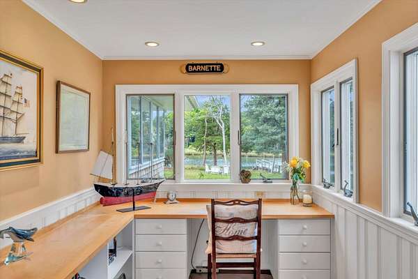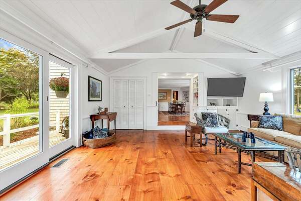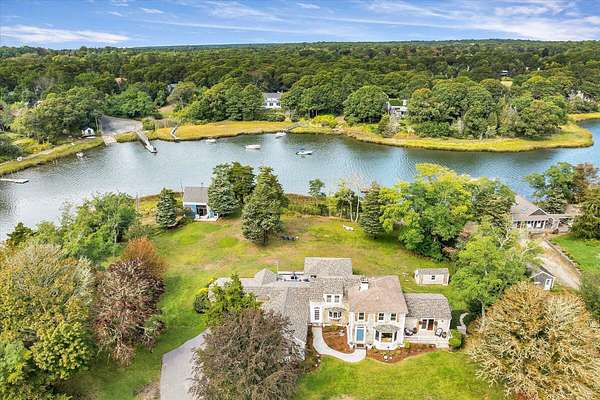 Here's your chance to own property in coveted East Orleans with a private deep-water dock, access to Meeting House Pond, Namequoit River, Little Pleasant Bay, Pleasant Bay and the Atlantic Beyond. Anchored on a sprawling 2.6 acres a mere 2.4 miles to world renowned, Nauset Beach, this stately property is graced by the embrace of water on three sides, showcases a rolling meadow of lawn space, and is punctuated by an artistic dappling of mature Oak, Maple, Beech and Cedar trees. The exquisite 3,867-square-foot residence is a testament to timeless charm, blending the allure of days gone by with the modern comforts that the discerning buyer has come to expect. This estate nestled on Lucy's Point Peninsula is an ideal tapestry for a family compound or serene river front getaway. Step inside to discover the warm glow of gorgeous wide plank pine floors, complemented by the charm of decorative fireplaces, expertly crafted moldings and built-ins that all evoke a feeling of historic relevance and a forgotten sense of hospitality. The floor plan is a good blend of open space and privacy. Featuring four spacious bedrooms, three well appointed bathrooms, and a diverse array of living areas for gatherings or a quiet place for solitude and reflection; there is something for everyone. The primary ensuite lives like its own private wing with a sitting area and large walk-in closet, while two separate flights of stairs lead up to the guest bedrooms and a shared bath. The kitchen area is composed of several separate rooms presenting an ideal set-up for storage, preparation, versatility, and creating culinary delights. Finally, completing the main floor there are myriad choices for entertaining, relaxing with a good book, or simply soaking in the nostalgia of this beautiful home. The property has been meticulously cared for and loved through the generations. With a newer roof, heating system, and AC units ensuring year-round comfort; this home is a harmonious blend of sophistication and comfort. Outdoors, the extensive property invites endless possibilities for leisure and recreation. A versatile boat house/barn, provides storage underneath and the ideal setting overlooking the entire property, for those raucous 4th of July parties or summer time family gatherings. Whether you seek a peaceful sanctuary or a lively gathering place, 66 Tide End Lane stands ready to welcome you with its unparalleled grace and beauty.