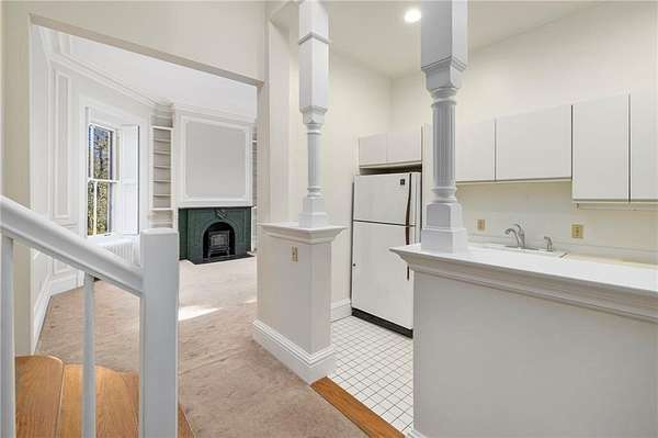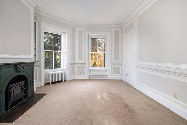 Est $4,115/moLansmere Condominium - on the National Register of Historic Places - is a beautiful stone masonry mansion dating back to 1840. This two-level, 2-bedroom unit is situated in the angled corner section of the building, a shape which gives it unique charm. With its 11-12' ceilings, the living room features original classic paneled wall trim with built-in bookshelves on either side of the black marble fireplace. Large windows with leafy views of the landscape provide an abundance of natural light. Other features include an in-unit laundry, ample closet space, and extra storage in the basement. Surrounded by 2.5 acres of private park-like grounds, Lansmere is located in Newport's famed Bellevue Avenue estate area.