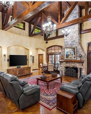Step inside to discover high ceilings, exposed wooden beams, and a cozy fireplace, creating a warm and inviting atmosphere perfect for hosting guests or unwinding with loved ones.