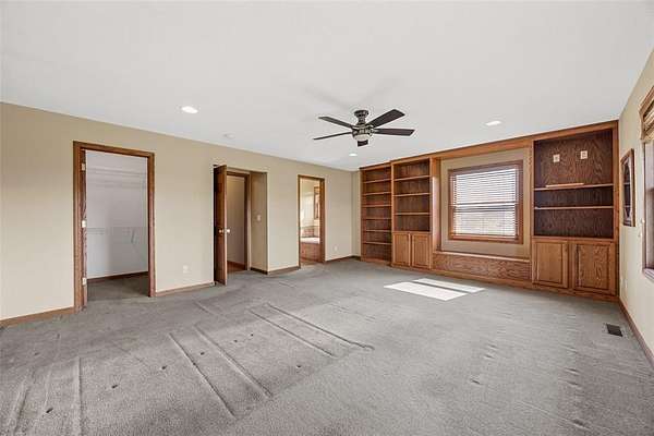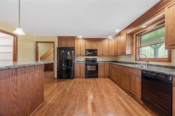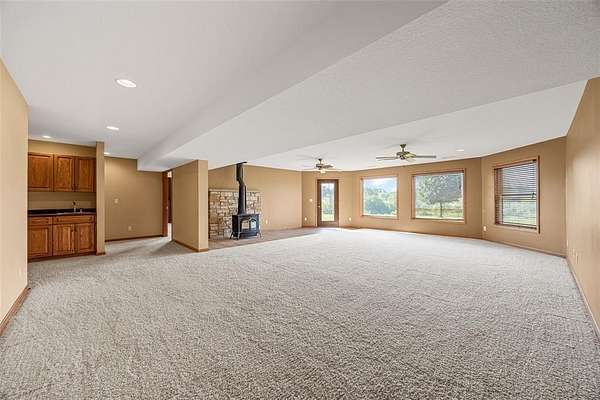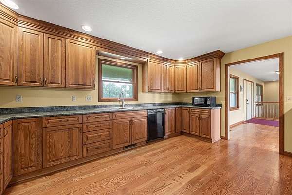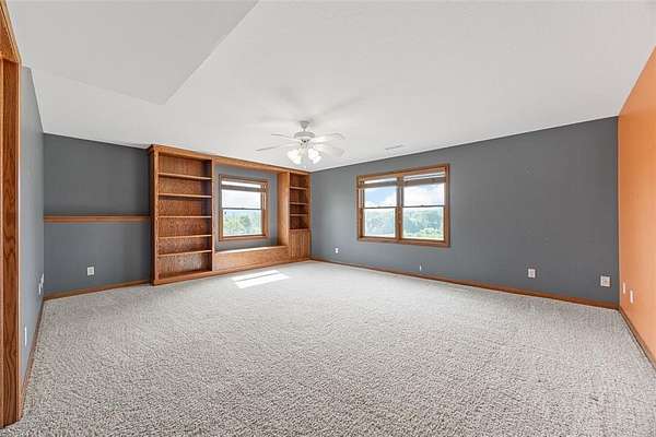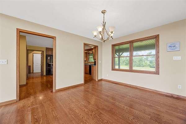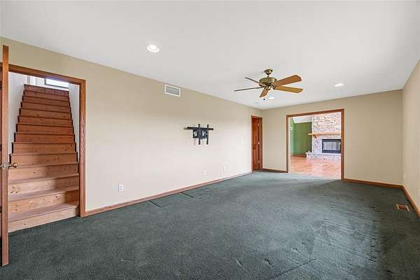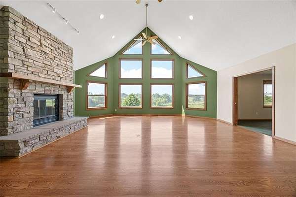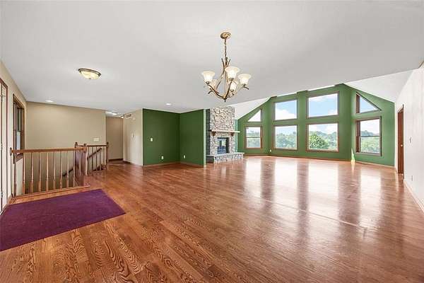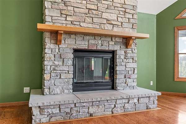 Situated on 25 picturesque acres, this stunning home offers over 4,400 square feet of finished living space and a layout designed for both comfort and entertaining. Step inside to be greeted by panoramic views from expansive windows, a beautiful stone fireplace, and an open main floor plan. The heart of the home features a spacious kitchen with a breakfast bar, large pantry, and seamless flow to the dining area and great room. A convenient half bath and a versatile office (or additional bedroom) complete the main level. The primary suite is a true retreat with a walk-in closet, full bath, jetted tub, and separate shower. Downstairs, the walkout lower level boasts three bedrooms, each with walk-in closets, a full bathroom with tub and separate shower, a wet bar, and a large rec room perfect for entertaining or relaxing. The unfinished second floor is ready for your vision--ideal for more bedrooms, a loft, or studio space. Enjoy the beauty of rolling land teeming with wildlife, from deer to turkey, right in your backyard. Recent updates include a new roof and new siding. All this with the convenience of easy access to Iowa City. Don't miss the opportunity to make this one-of-a-kind property your own!