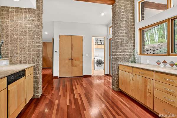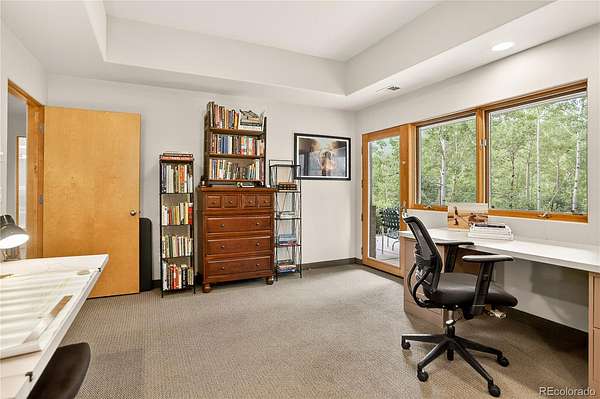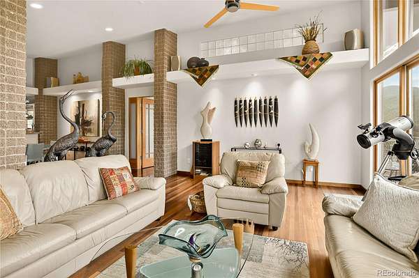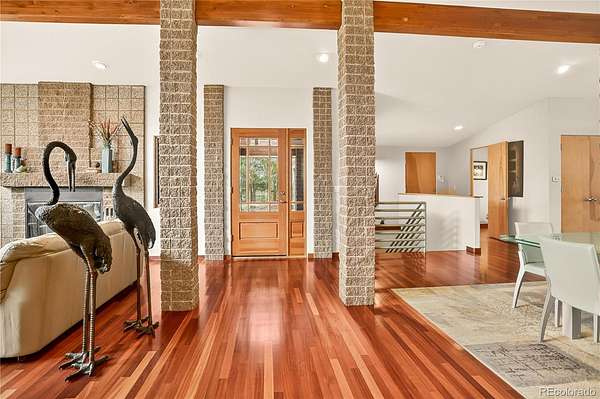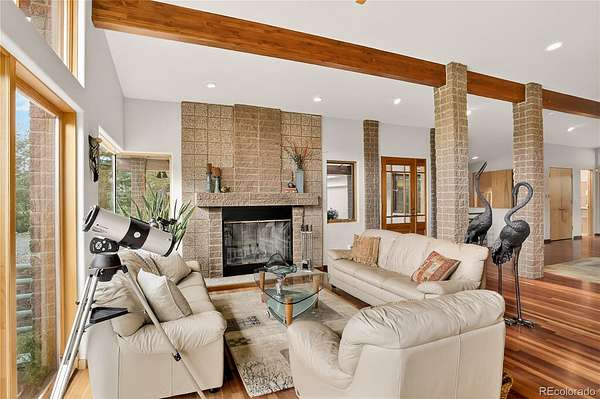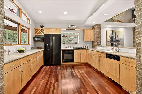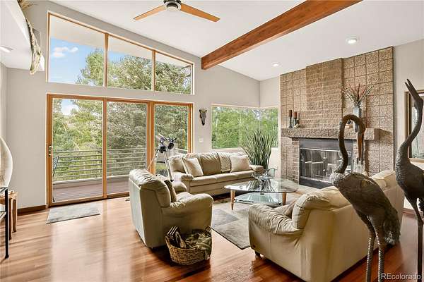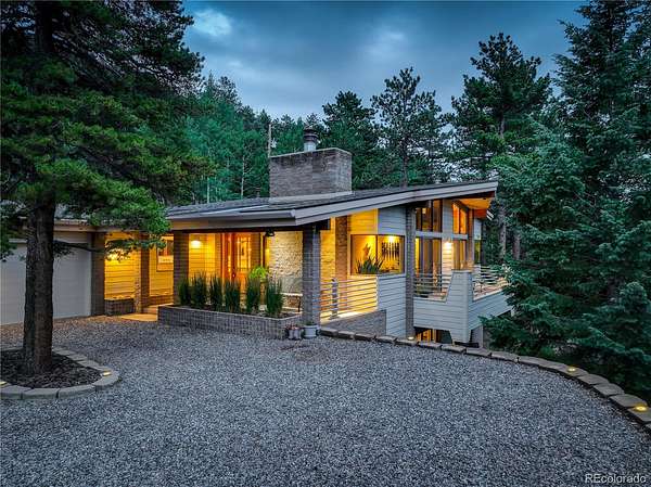 Set on a beautifully landscaped 1.76-acre lot in Golden Gate Park Estates, this meticulously cared for custom ranch home blends mountain character with intentional craftsmanship, minutes from some of Colorado’s most beloved outdoor destinations. Surrounded by privacy, expansive views, and mature natural landscaping, the property provides a true retreat while keeping you connected to the Front Range. The main level features rich Brazilian cherry hardwood floors and striking textured concrete block columns that add architectural interest throughout the open layout. A dramatic wall of windows fills the great room with natural light, framing the surrounding landscape and highlighting the cozy wood burning fireplace. The dining area flows naturally from the living space, and the custom kitchen offers both style and functionality with direct access to a patio overlooking terraced flower beds and thoughtfully designed outdoor spaces. This level also includes a spacious laundry room, powder bath, and interior access to the oversized two car garage. The primary suite is a quiet sanctuary with its own gas fireplace, a luxurious five-piece bath, and access to two private decks. The walkout lower level expands the home’s living space with a generous family room, two well sized bedrooms that open to the covered lower patio, a full bathroom, and abundant storage. Exterior highlights include a new roof, fresh exterior paint, terraced landscaping, modern steel railings, and county-maintained road access. While the home itself is beautifully crafted, the lifestyle it offers is equally compelling. Outdoor recreation is abundant, with Golden Gate Canyon State Park, Clear Creek, and miles of hiking and fishing opportunities all close by. You’re just 30 minutes from Historic Downtown Golden, known for its dining, shopping, breweries, and year-round events, and only 20 minutes from Black Hawk and Central City for entertainment and additional amenities.