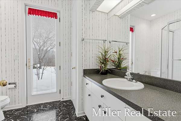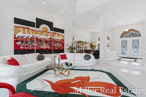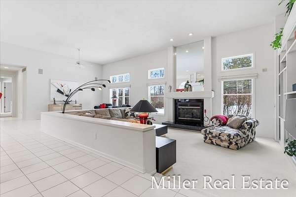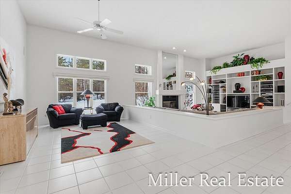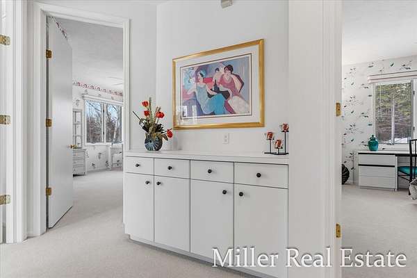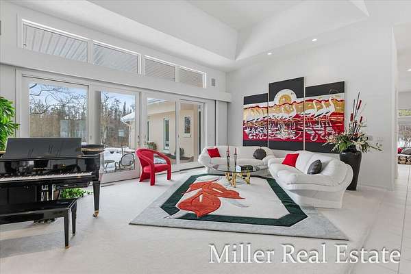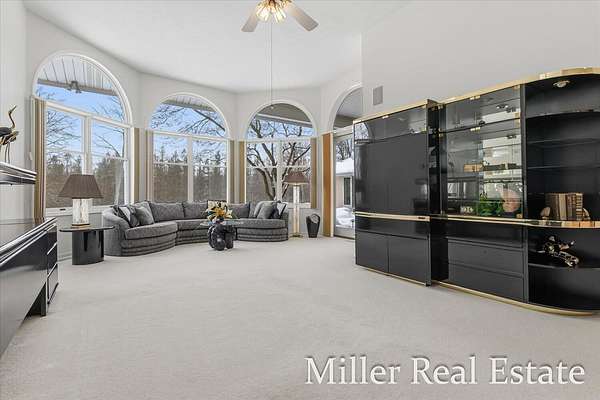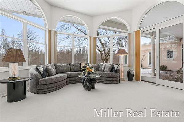 A rare anchor property in the Indian Hills Golf Course community, this exceptional estate offers luxury, privacy, and private frontage on Carter Lake. Set on approximately 5 secluded acres, the setting is peaceful and park like while remaining close to Hastings amenities. Inside, expansive living spaces feature soaring tray ceilings and abundant natural light. The sunken living room with bar area flows seamlessly into the open kitchen and dining nook, creating an ideal space for entertaining. The home offers 4 bedrooms, including a massive primary suite, 3.5 bathrooms, and an extremely large basement ready to be finished to your heart's desire. Mature trees and natural surroundings enhance the feeling of privacy, making this home feel like a personal retreat. The unique combination of golf course living, private water frontage, and a truly secluded setting, an opportunity rarely found in Indian Hills.