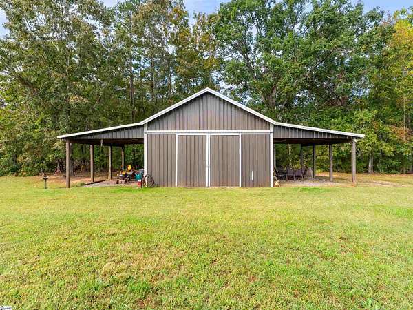 Call The Clayton Group with Real Broker at 864-895-8977. Tucked away at the end of a 1,250-foot driveway, this peaceful and private property offers the best of rural living--plenty of space, stunning natural surroundings, and complete seclusion, all just a short walk to the South Carolina line. Although the address is Rutherfordton, the home is located in desirable Polk County and offers a fantastic opportunity for a horse property, mini farm, or simply a quiet country retreat. The land includes open pasture areas, woods, and a garden space with raised beds, all partially fenced and ready for animals or expansion. An additional 14-acre wooded parcel on Radar Road is also available separately for those looking to expand. The property includes a 24x24 barn-style garage with power, front and rear sliding doors, and dual 24x15 lean-tos on each side, offering flexible space for animals or equipment. There's also a 32x30 equipment or hay storage building with over 11-foot ceilings. Inside, the home is full of charm and light, featuring hickory hardwood floors throughout most of the living spaces and no carpet. The kitchen is well-appointed with solid hickory cabinetry, Corian countertops, a center island, pantry, and a full suite of appliances--including the washer and dryer. A spacious eat-in area and plenty of windows make the heart of the home feel bright and inviting. One of the highlights is the beautiful sunroom addition with vaulted wood-lined ceilings, luxury vinyl plank flooring, and a Vermont Castings Defiant wood stove with a floor-to-ceiling stone surround. This space is served by a mini-split system and opens onto a stone patio where a private hot tub awaits--also included with the home. The primary suite is tucked away at the back of the house and features a walk-in closet, tiled shower, jetted tub, dual vanities, and lots of natural light. All bedrooms are located off a central hallway and offer generous closet space. The home also features nine-foot ceilings, crown molding, and a full-length covered front porch perfect for relaxing while taking in the pastoral views. With internet access available, room to roam, and no other homes in sight, this property offers a rare combination of comfort, privacy, and flexibility. Whether you're looking to start a small farm, keep horses, or simply enjoy the peaceful lifestyle, this one is truly special.14.88 acres is the additional parcel available that fronts Radar road. Both parcels can be purchased for $942,900.