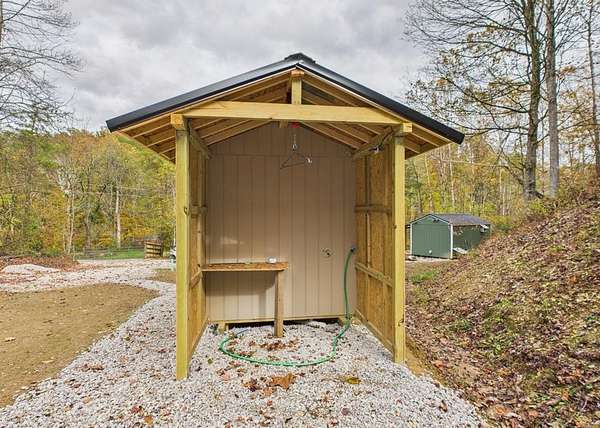 Private 14.43 acre surveyed hunting camp/homestead property. Seller states offers FREE NATURAL GAS, utilities located in a quiet setting. Property features a new septic, storage building, three separate cabins: a bathroom cabin with skinning shed on back & tankless propane water heater, living room cabin that features dog lot/dog house on side & front porch, & kitchen/bunk house w/front porch, making it easy to relax after a day spent exploring or hunting or could be turned into 2 tiny homes. With plenty of wooded acreage, there's ample wildlife, trails, & open space for recreation or building your dream homestead. All utilities in place!