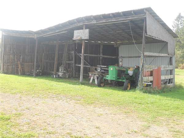 Amazing views on this 80+- acre farm! 80 acres consists of mostly open fields and pasture, some woods and creek. Productive dairy farm until 2019. All milking equipment conveys, Universal pipeline, 735-gallon Sunset bulk tank, compressor, milkers, vacuum pump, hot water heater, etc. Dairy barn has stanchions for about 55 cows, several calf pens, drop cleaner, 3 silos with unloaders and grain bin. Equipment storage barns and shops. Farmhouse has 3 beds, large bathroom with laundry area. Kitchen, living room and dining room, large back attached garage. Home has been vacant for many years and is in need of extensive repair. Barn and house each have separate septic systems. Shared well feeds barn, house and neighboring single wide home. Driveway to barn is shared with single wide home. There is a 2nd driveway for house and barn. Pasture has been used until 2023. Hay harvested until 2025. Summer of 2025 fields were mowed and left. Additional equipment is negotiable. Being sold "As Is". Soil Map: Fields are Mardin Channery Silt Loam. Behind the barn is Volusia Channery Silt Loam.