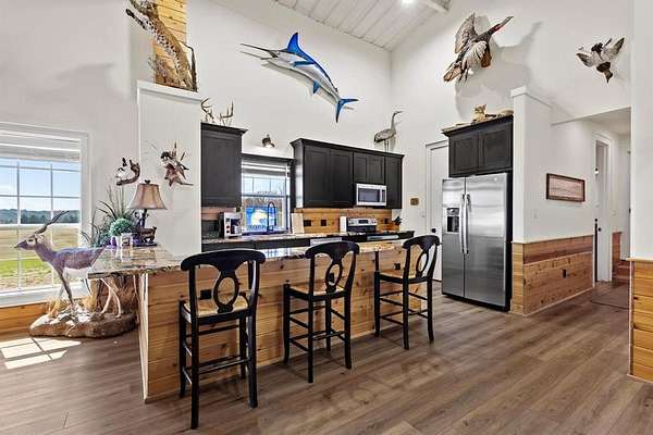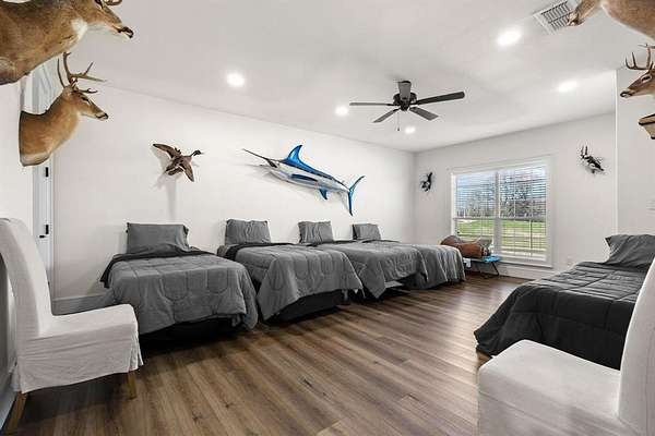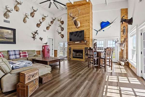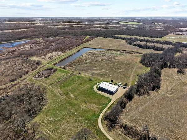 Welcome to the Wafer Creek Ranch located in SW Lamar County just 1.5 hours North of DFW. Possibly one of the most well rounded recreation ranches on the market and most notable for its rich waterfowl hunting and Trophy whitetail deer. From the minute your arrive at your private gated entrance at a dead end county road you will find luxury, peace and a place you will be proud of. Boasting 594+acres of Sportsman's Paradise, WCR offers high hills and big bottoms with Ducks Unlimited designed wetlands scattered throughout offering first class waterfowl hunting that the Central Flyway has to offer. Mallards, gadwall, teal and wigeon call WCR home during the wintering months and give the waterfowler ample opportunities. 10 strategically place stands with feeders and cameras are placed across the ranch offering opportunities for big bucks and hogs alike. Wafer Creek Ranch also offers Sulphur River frontage with opportunities for fishing as well as exploring for artifacts and fossils. As nice as the ranch is, the amenities graciously compliment. Atop the hill looking out over the wetlands is a 100x40 barndominium constructed in 2021. Complete with drive through overhead doors, gun room, lockers, commercial ice machine and skinning shed with game hoist, electric and water. Inside offers modern finish outs, a 3 bedroom 2 bath concept with vaulted ceilings, wood burning fireplace centerpiece and tons of natural lighting. French doors lead to the porch area ideal for entertaining or sipping that morning coffee over a sunrise. Mature Hardwoods and pecan trees, good grasses for hay productions and CR access on 2 other sides of the ranch. WCR is conveniently located to the metroplex as was as Lake Bois D Arc and soon the be Lake Ralph Hall. WCR is turn is a turn key sportsman's retreat ideal for a club type concept or a place for you and your family to enjoy.