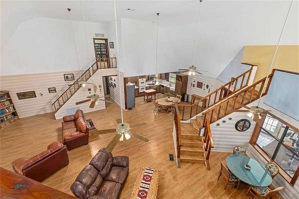 - Built-In Features, Cathedral Ceiling(s), Decorative Lighting, Eat-In Kitchen, Loft, Multiple Staircases, Natural Woodwork, Open Floorplan, Pantry, Second Primary Bedroom, Vaulted Ceiling(s), Walk-In Closet(s)