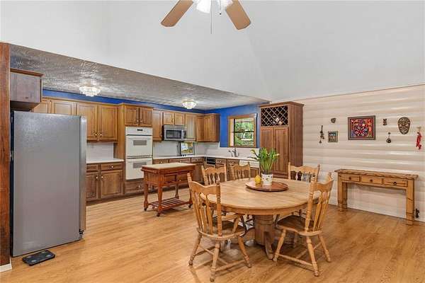 With over 4,500 square feet of living space, plus an additional 1,600 square foot basement, this spacious home offers the perfect blend of rustic charm & comfort. Inside, you’ll find an open floor plan centered around a massive living area with a wood-burning fireplace—ideal for gathering & relaxing. The floor plan is extrmely versitile with rooms that could be used for a media room, gameroom, or whatever your needs may be.