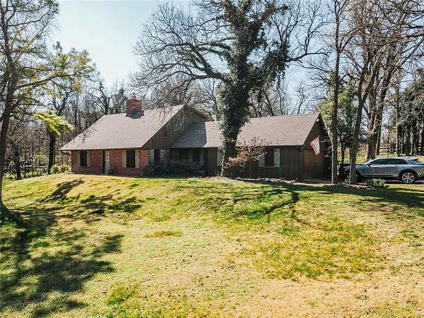 Tucked behind mature trees on a private five-acre setting, this architect-designed Cape Cod estate offers timeless elegance with the freedom of open land living. Thoughtfully updated and beautifully maintained, the home blends classic charm with modern comfort, creating a welcoming retreat for everyday living and entertaining alike. Outdoor amenities feel resort-inspired, with space to gather, relax, and enjoy Oklahoma sunsets, while a separate office building adds exceptional flexibility for remote work, creative pursuits, or guest use. Zoned agricultural, the property offers rare versatility-ideal for privacy, hobby use, or future possibilities-while still delivering a refined residential experience. Extensive upgrades and improvements have been completed over time; full details are available in the seller's disclosure. This is a unique opportunity to enjoy old world luxury, space, and lifestyle flexibility in a truly special setting.