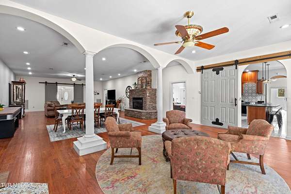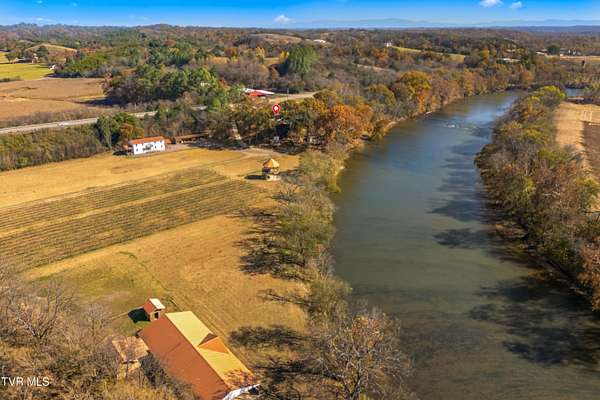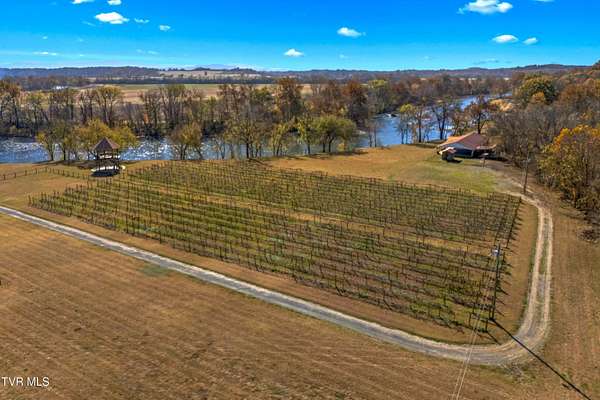 Experience riverfront living at its finest on the Nolichucky River. This 5,056-sq-ft, 15.81 acre estate offers 5 bedrooms, 5.5 baths, and 14 total rooms-ideal for private living, vacation rental income, or event hosting. The property features a vineyard, wedding pavilion, elevated gazebo, and a private river boat launch for outdoor enjoyment and recreation. Among the multiple buildings that grace the the property include: The home and detached areas accommodates 16+ guests overnight with room for hundreds during the day and includes spacious living and entertaining areas, perfect for weddings, retreats, and family gatherings. Enjoy a large party deck designed for entertaining with cocktails and panoramic river views. With breathtaking scenery, exceptional amenities, and flexible use potential, this property delivers a rare combination of beauty, function, and opportunity along the Nolichucky River. Drone photos used to display property