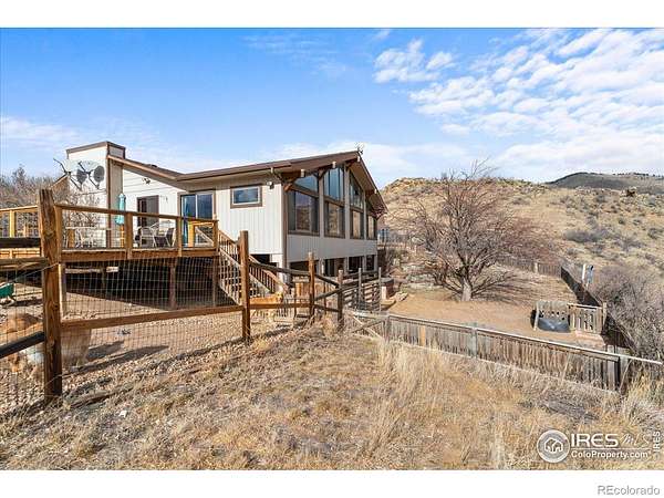 Mountain Sanctuary! This hidden gem horse property is a rare find! A foothills sanctuary where breathtaking views and modern daily living converge-minutes from Loveland and Ft Collins. Outside city limits at the end of a quiet cul-de-sac in Masonville; the road is paved from town to the driveway. A humble yet elegant walk-out ranch style property sits on 6+ acres of pastures and natural areas, with a fenced turnout pasture, loafing shed and a 750 sq ft barn with indoor/outdoor dog runs and a loft. Surrounded by vast undeveloped acreage it offers true Colorado living to accommodate horses, dogs, cats and chickens; in harmony with untouched wildlands! A seasonal waterfall & creek run through it! The thoughtfully designed 4 bedroom, 3 bath residence features 3,034 finished sq ft. A remodeled open floor plan features a great room connected to a passive solar sunroom, with vaulted ceilings & expansive windows that frame mountain peaks & valley views bringing the outdoors in from every vantage point. This property also features an in-home office & an attached over-sized garage. It is perfectly suited for practical everyday living, in-home business & spacious "wow you" entertaining. Surrounded by natural beauty, it is just minutes to Coyote Ridge, Devils Backbone and Horsetooth and Carter lakes, offering endless possibilities for equestrian & recreation, or just relaxing on the deck to enjoy the peace & quiet of wide-open space. Part of a small, coveted community, the HOA (only $45/year) includes ownership/access to an expansive 72 acre private greenbelt system on the Buckhorn and Redstone confluence, ensuring a true sense of nature and wildlife preservation. This remote and rugged space is supported by the conveniences of modern living: Little Thompson water district and Poudre Rural Electric Assn, flawless Wifi service (RiseBroadband), as well as furnace/fireplace/woodstove fueled by propane & a well-maintained septic system. This is more than a home-it's a lifestyle!